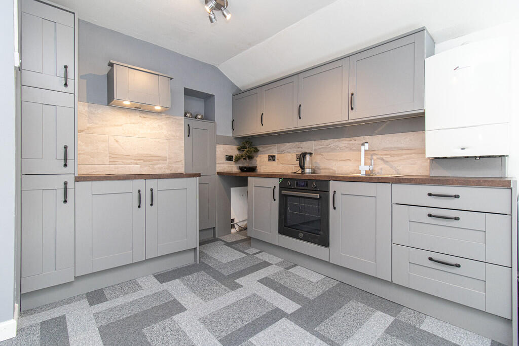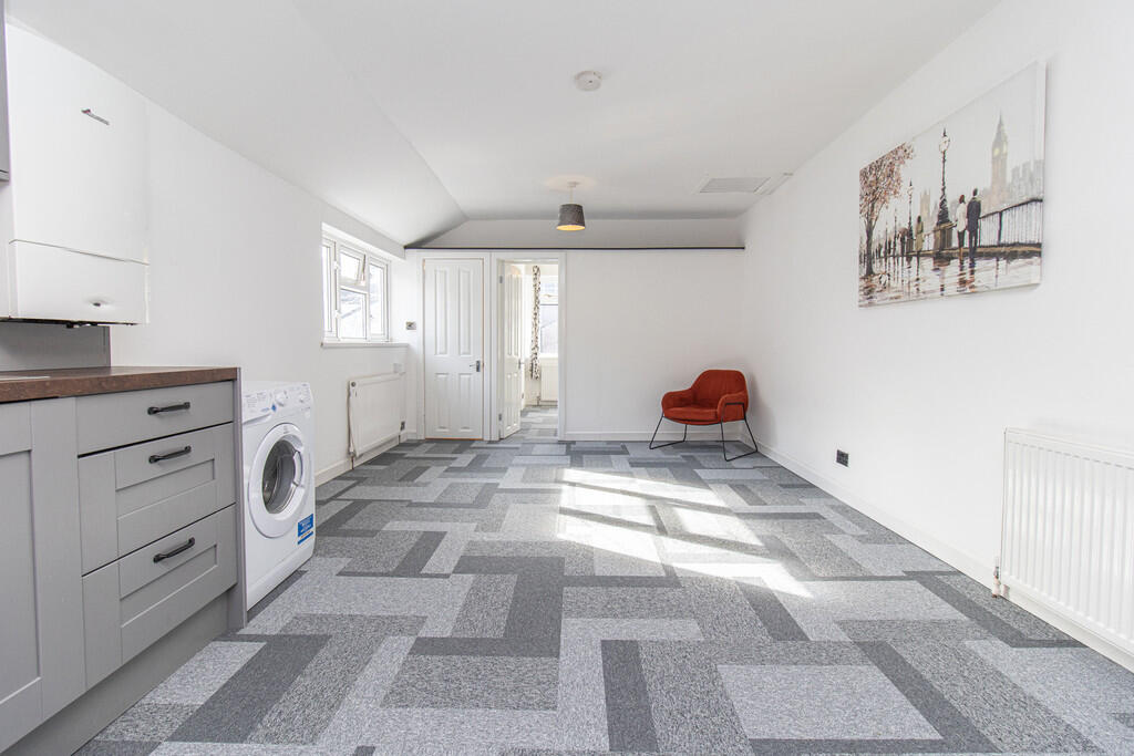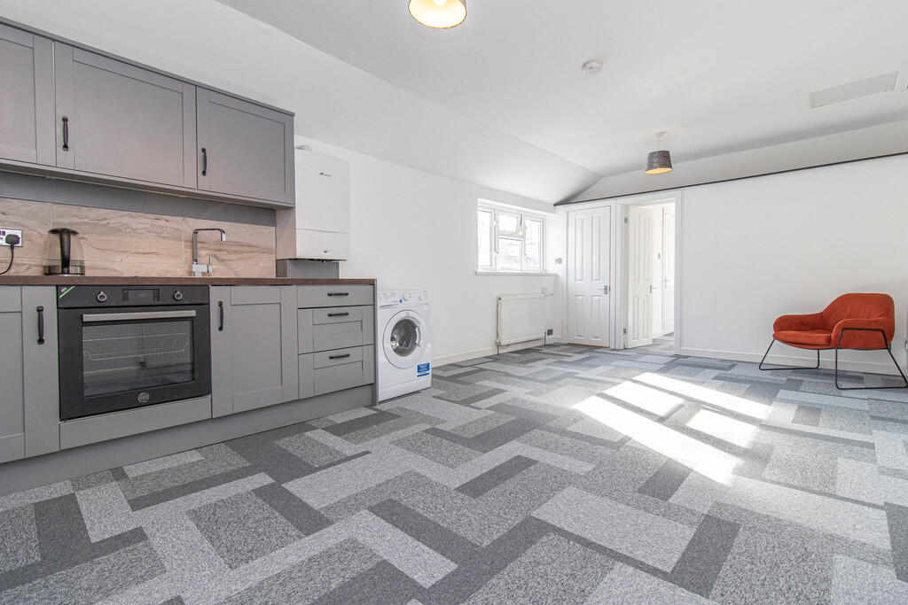 LOUNGE/KITCHEN20' 10" x 10' 11" (6.37m x 3.35m) Open plan space. Carpet to floor. Range of wall, base and drawer units with worktops over incorporating stainless steel sink and drainer with mixer tap over. Integrated oven. Space for appliances such as washing machine and fridge freezer. Tiled splashbacks. Pendant light fittings to ceiling. Plug points. Wall mounted Worcester boiler. Two radiators. Double glazed window to side. Doors to WC and bedroom.
