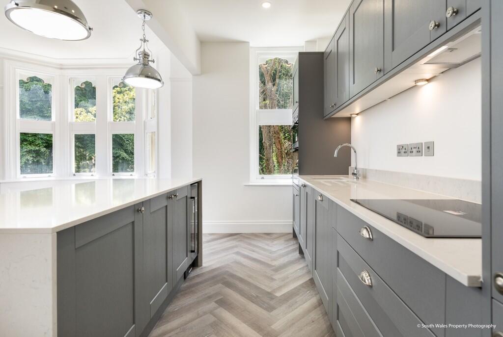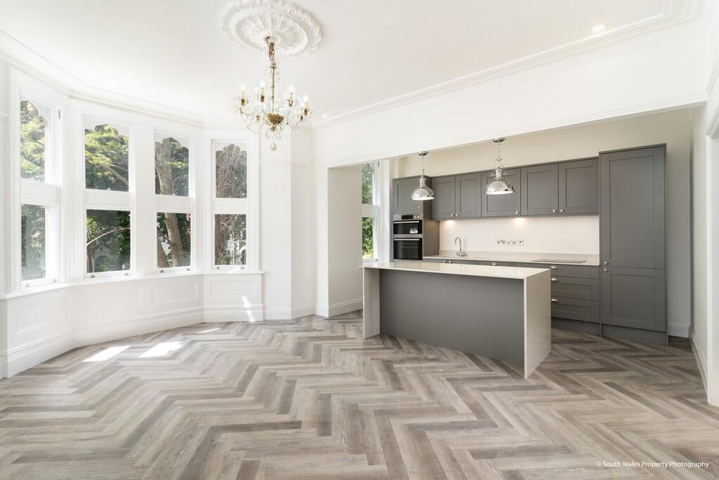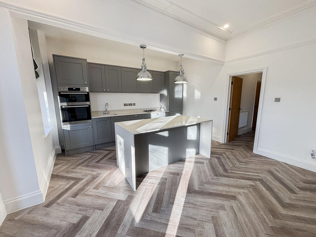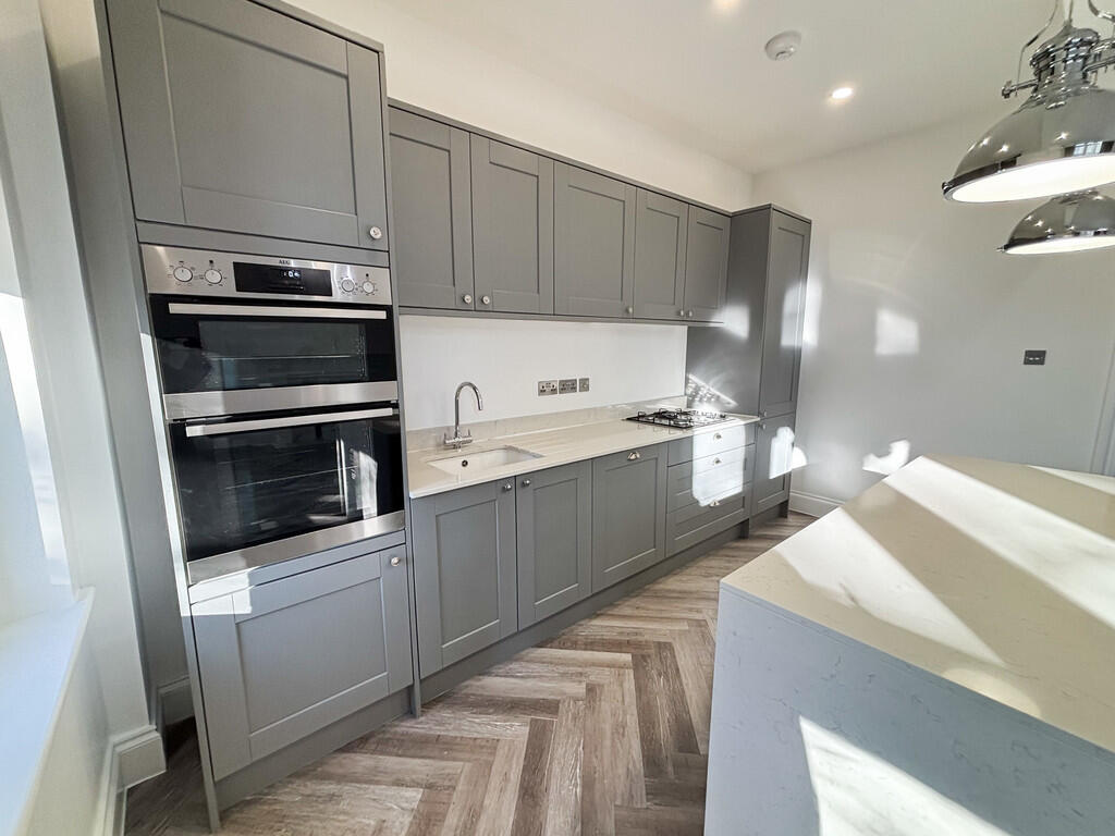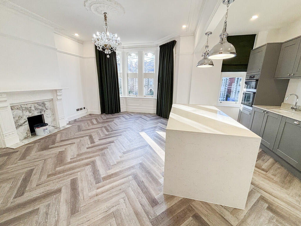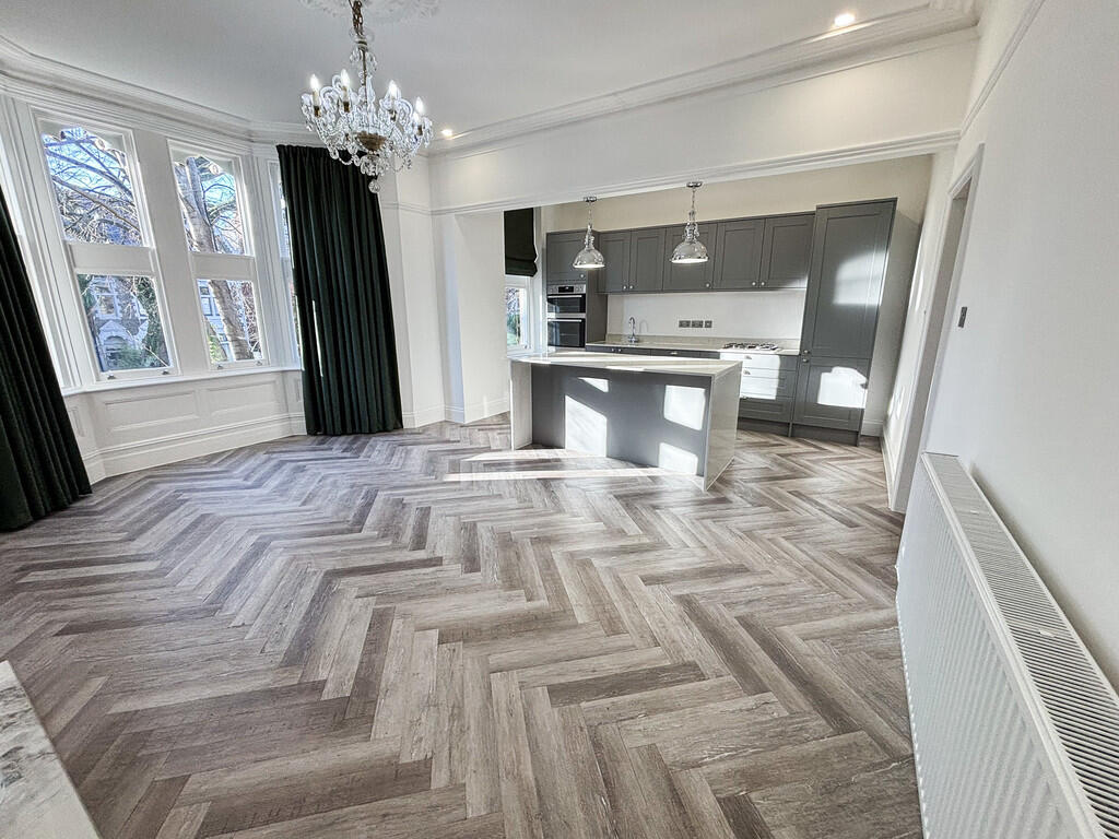 Kitchen/Dining/Lounge(5.50m x 6.30m) <p class="MsoNormal"><b>Four traditional wooden bay Windows to front elevation, further window to side of kitchen. Traditional shaker style kitchen with Island, integrated appliances include, washing machine, dishwasher, double oven/grill, hob and tall fridge freezer. Quartz worktops, radiators and LVT flooring herringbone style. <o:p></o:p></b></p>