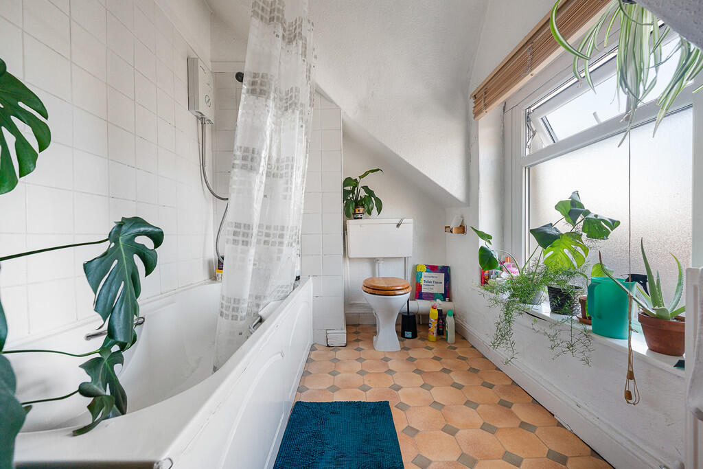 BATHROOM Double glazed window to rear. Radiator. Pedestal wash hand basin with hot and cold tap. Panelled bath with electric shower above. Extractor fan. Shaver point. WC. Combi-boiler.