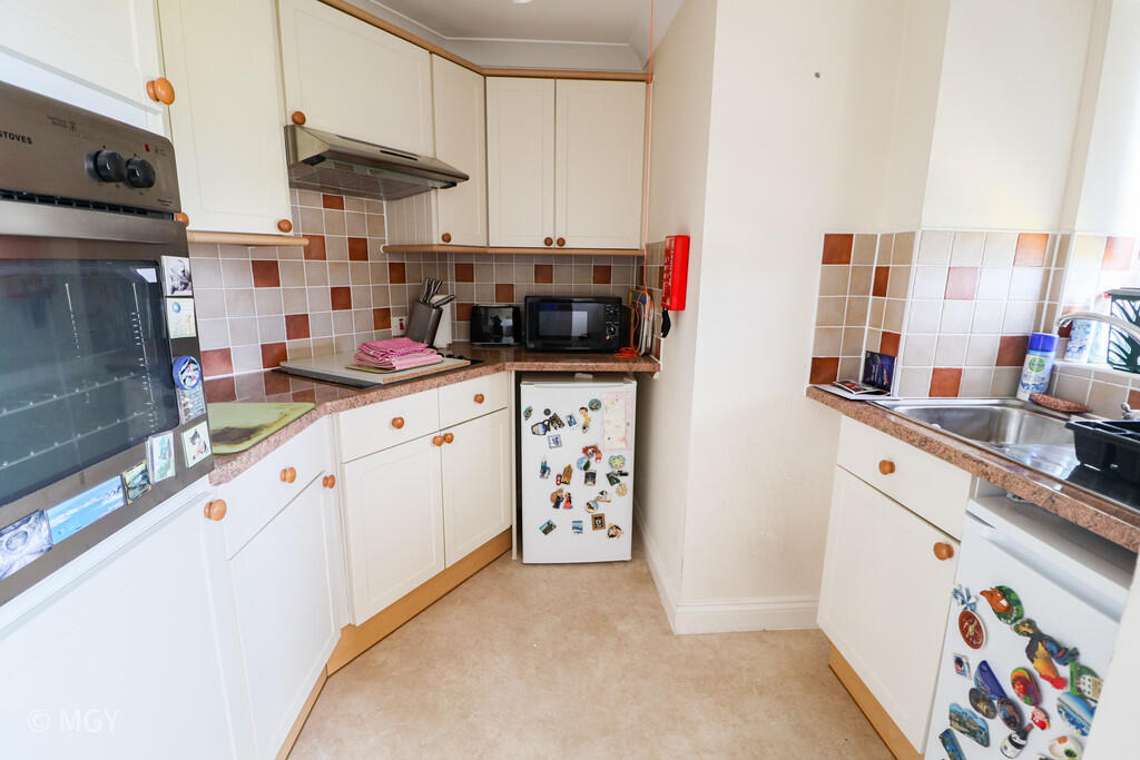 KITCHEN8' 11" x 7' 8" (2.72m x 2.36m) Fitted with a range of wall and base units incorporating work surfaces with ceramic tiled splash areas. Inset stainless steel sink and drainer with mixer tap. Built-in Stoves oven and a four ring electric hob with an extractor over. Wall mounted electric heater. Ventilation extractor. Emergency pull cord. Double glazed window.