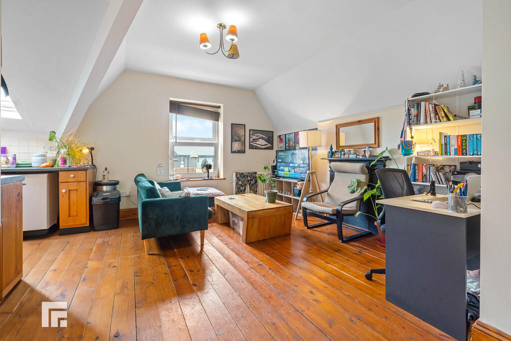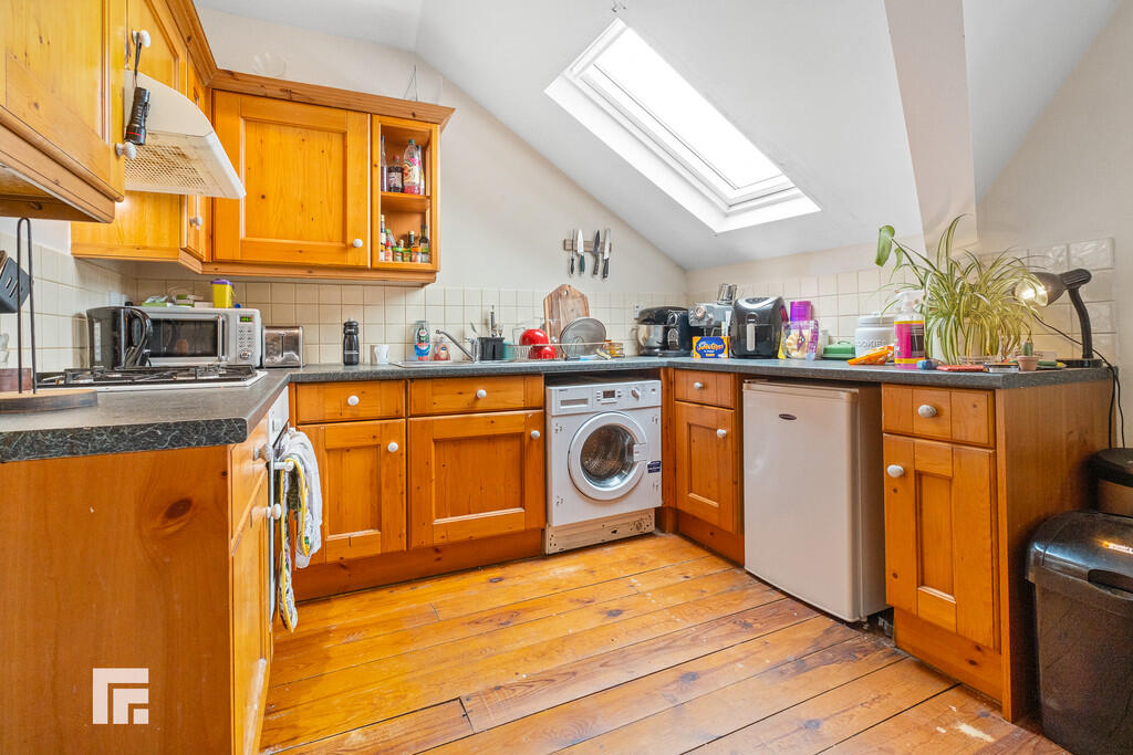 LOUNGE/KITCHEN17' 9" x 17' 10" (5.43m x 5.45m) Exposed floorboards. Double glazed uPVC window and additional Velux window to front aspect. Pendant light fitting and spotlights. TV and telephone point. Fitted storage cupboard which also houses the boiler. Power points. Radiator. Fitted kitchen with a range of wall, base and drawer units with worktops over incorporating stainless steel 1.5 sink and drainer with mixer tap over and four ring hob with extractor above and oven beneath. Space for appliances such as washing machine and fridge/freezer. Tiled splashbacks.