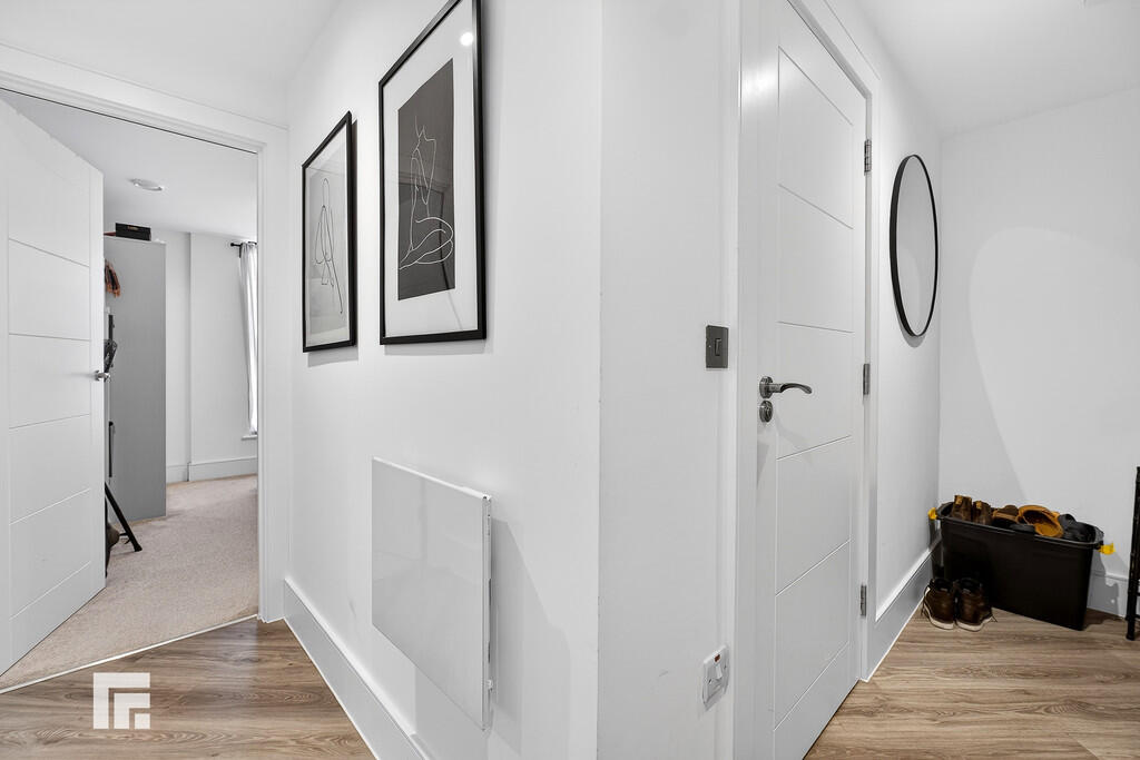 ENTRANCEHALL Entered via front door leading from communal hallway. Laminate flooring. Spotlights. Wall mounted electric heater. Doors to all rooms and storage cupboard.