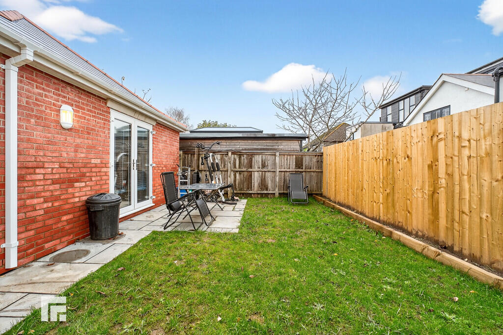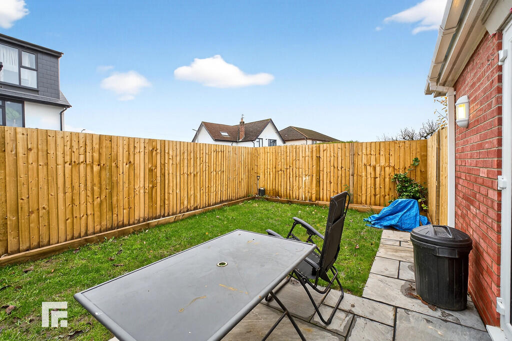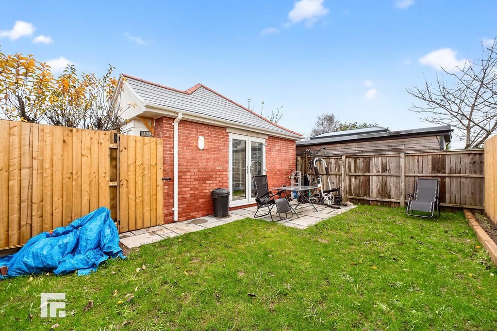 REAR - Enclosed garden with wooden fencing and gate to front of property. Mainly laid to lawn with patio area.