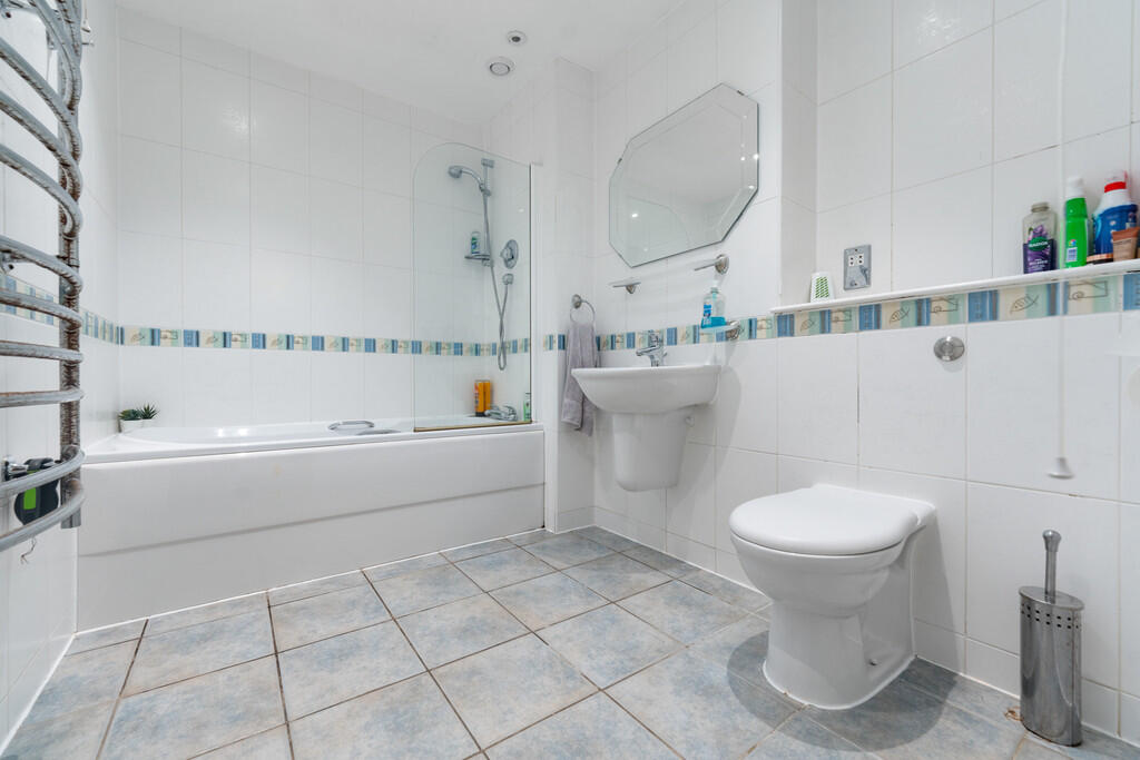 BATHROOM8' 9" x 7' 2" (2.69m x 2.19m) Tiled flooring. Fully tiled walls. Wall mounted wash hand basin. Panelled bath with shower over and glass shower screen. W.C. Heated towel rail. Shaver point. Extractor fan. Spotlights.