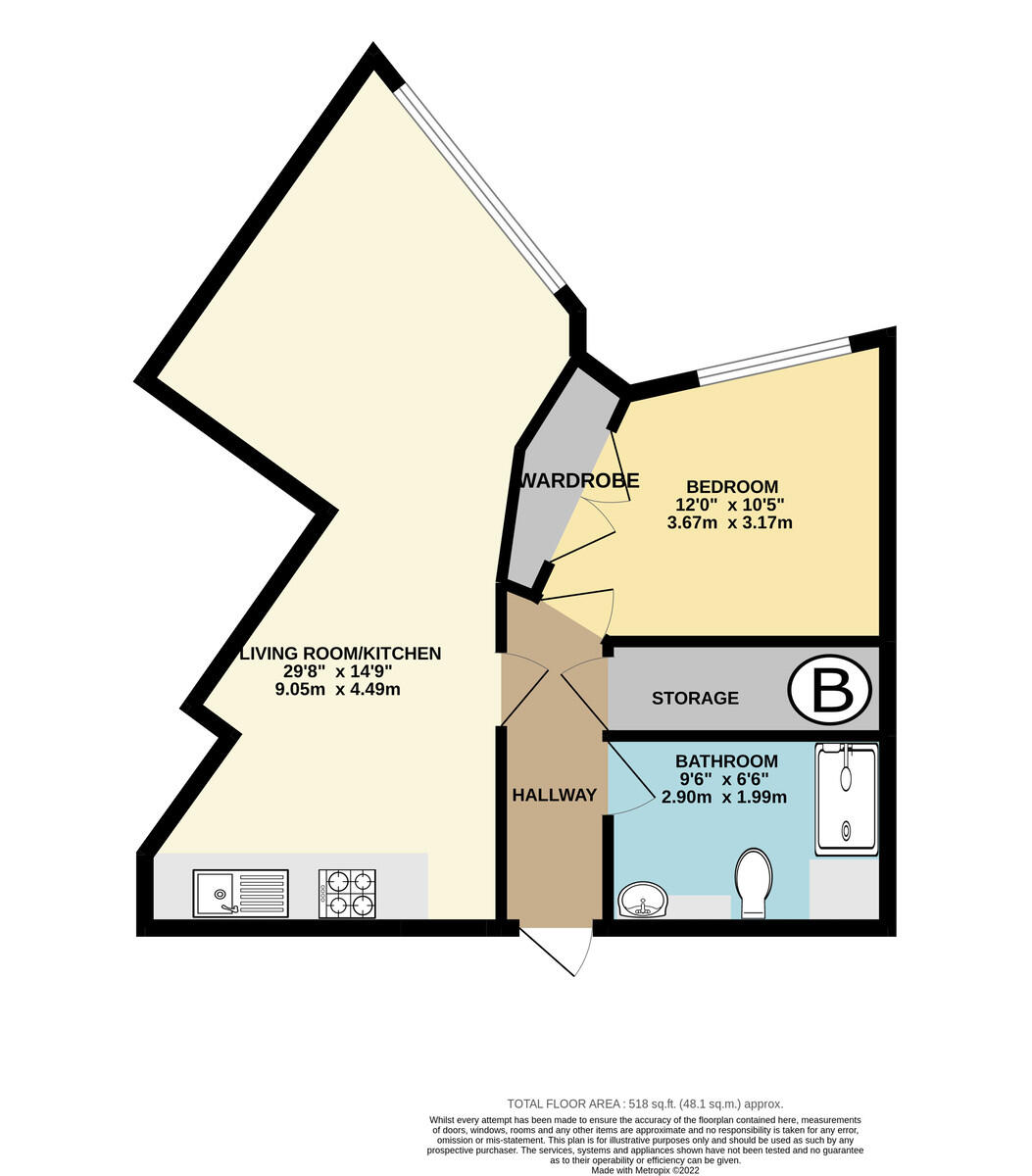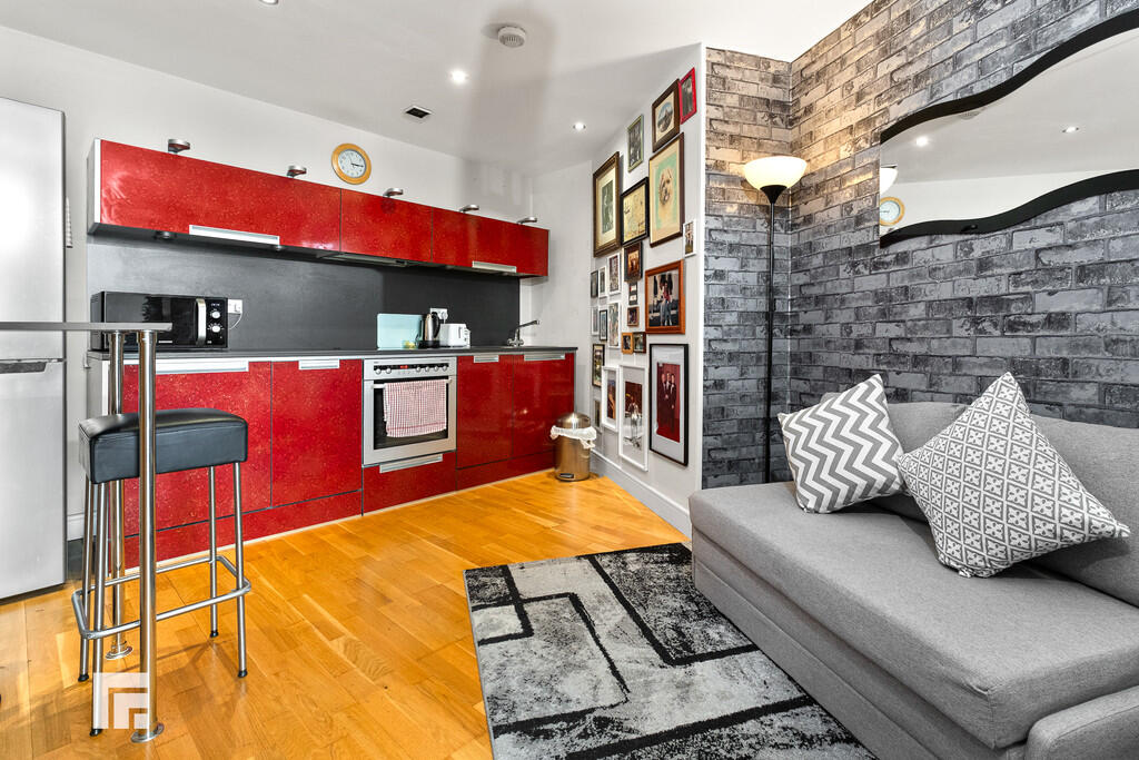 LOUNGE/KITCHEN/DINER29' 7" x 14' 8" (9.04m x 4.49m) Double glazed uPVC floor to ceiling windows to front, with fantastic city centre views. Ample natural daylight. Wood flooring. Base and wall units with work surfaces incorporating stainless steel sink with mixer tap. Both over unit and under unit spotlights. Built in oven, four ring electric hob, with extractor over. Space for fridge freezer. Two wall mounted electric panel heaters. Wall with open serving hatch. Fixed shelving. TV Aerial point. Telephone point. Air vent. Spotlights. Open Plan living.