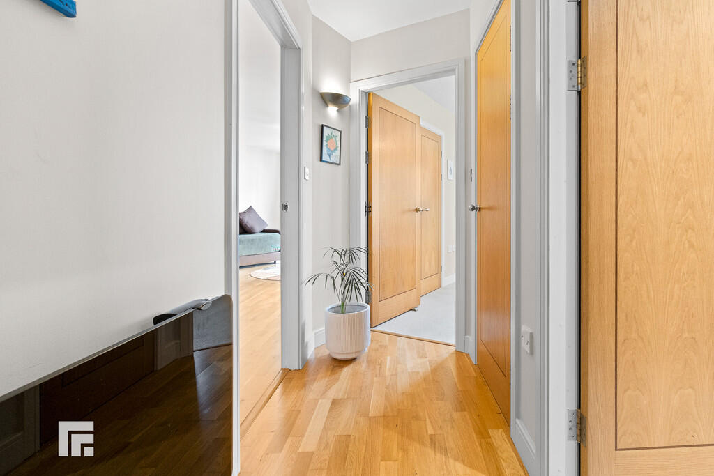 ENTRANCEHALL Entered via wooden door, with security spy hole. Spacious hallway. Wood flooring. Wall mounted lighting. Large storage cupboard, housing new hot water tank. Wall mounted electric panel heater.