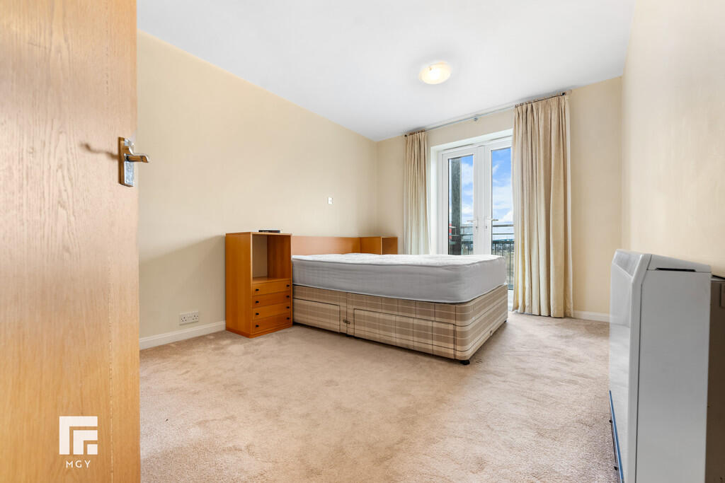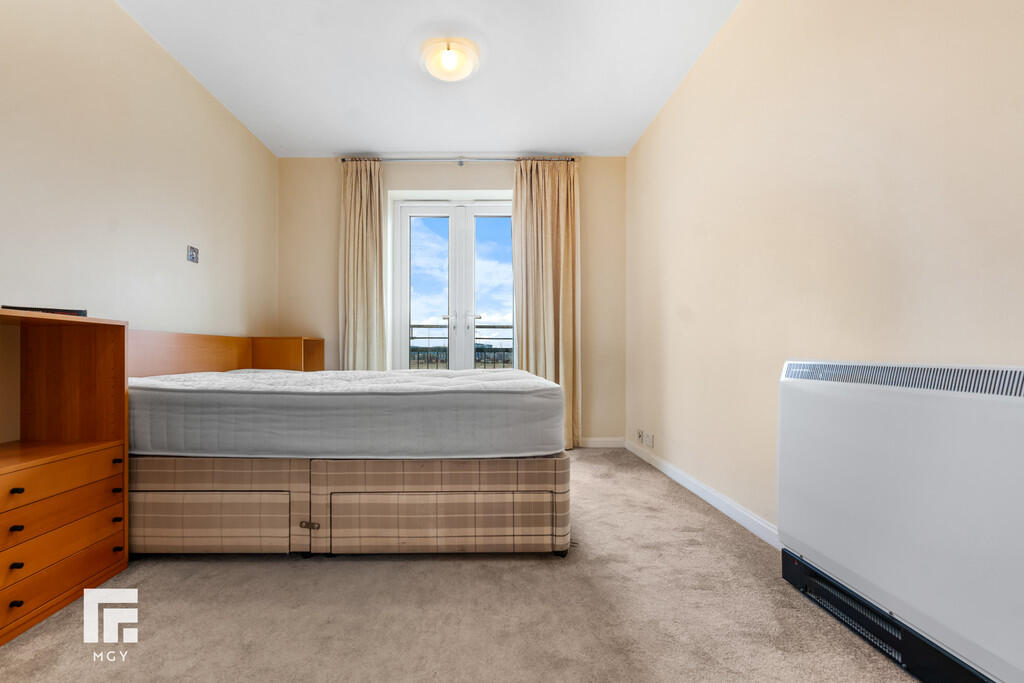 BEDROOM9' 3" x 11' 5" (2.83m x 3.48m) Double glazed uPVC double doors leading to balcony with water views. Double bedroom. Carpeted flooring. TV Aerial point. Wall mounted storage heater. Built in double door wardrobe.