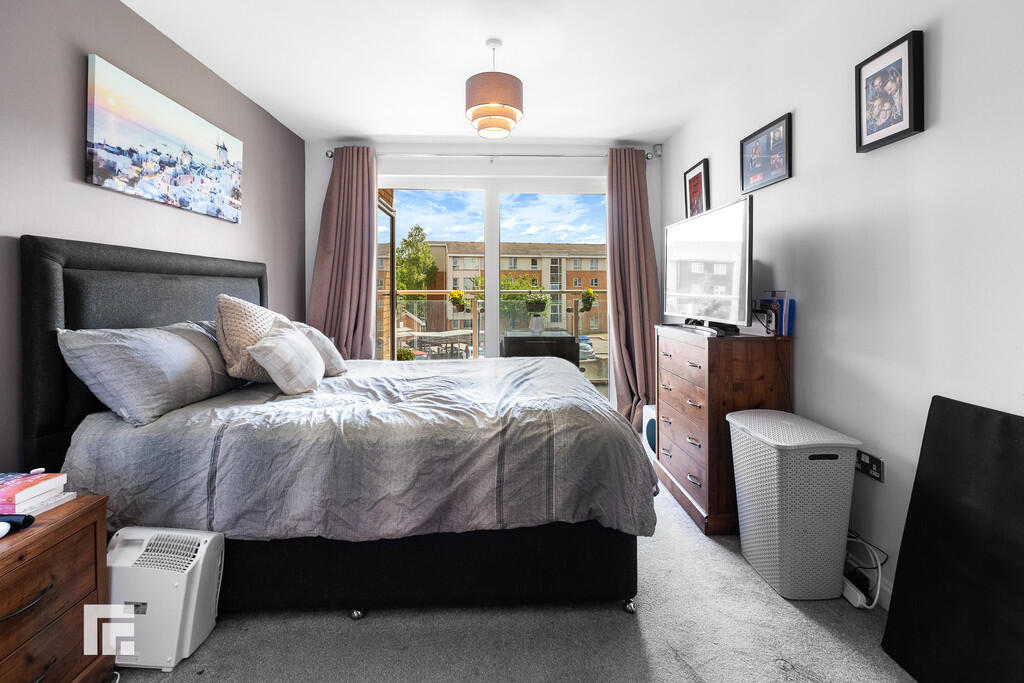 BEDROOM19' 7" x 9' 8" (5.99m x 2.96m) Exceptionally large double bedroom. Double glazed uPVC doors leading to balcony. Carpeted flooring. Underfloor heating. Two built in double wardrobes. T.V Aerial point. Telephone point. Thermostat.