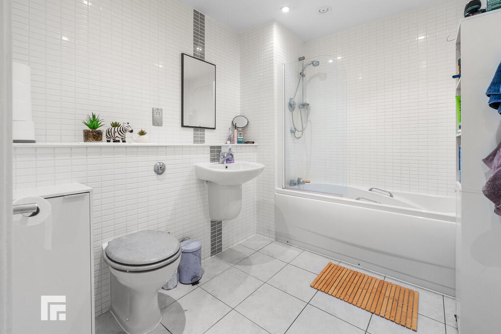 BATHROOM7' 1" x 8' 7" (2.18m x 2.63m) Spacious bathroom. Tiled flooring. Fully tiled walls. Wall mounted wash hand basin, with mixer tap. W.C. Panelled bath, with mains shower over and glass shower screen. Wall mounted storage cupboard. Heated towel rail. Shaver point. Extractor fan. Spotlights.