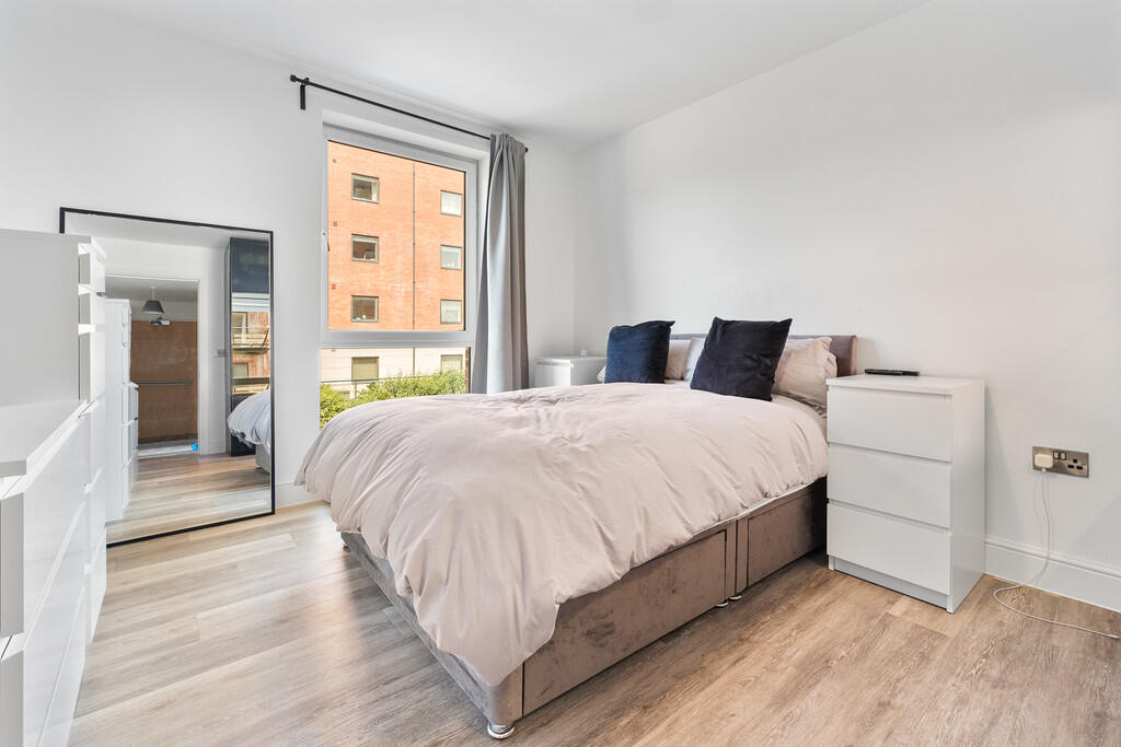 BEDROOM12' 3" x 10' 6" (3.74m x 3.22m) Large double glazed uPVC windows to front. Partial water views. Spacious double bedroom. Wood effect laminate flooring. Large wardrobe, with mirrored sliding doors. TV Aerial point. Wall mounted electric panel heater.