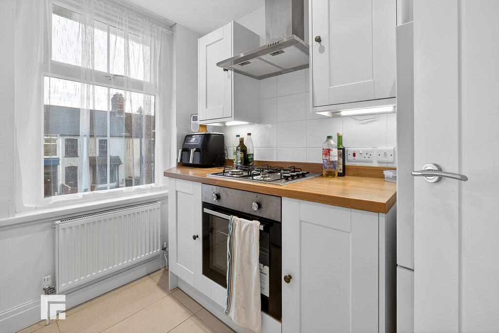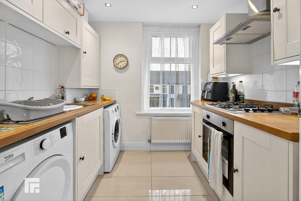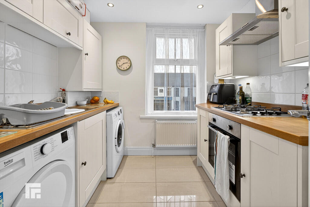 KITCHEN7' 11" x 7' 11" (2.42m x 2.42m) Double glazed uPVC window to front. Tiled floor. Modern base and wall units with work surfaces and tiled splash backs incorporating stainless steel sink unit with mixer tap. Built in oven and 4 ring gas hob with extractor over. Space for fridge / freezer. Plumbing and space for washing machine and tumble dryer. Cupboard housing i24 gas combi boiler.