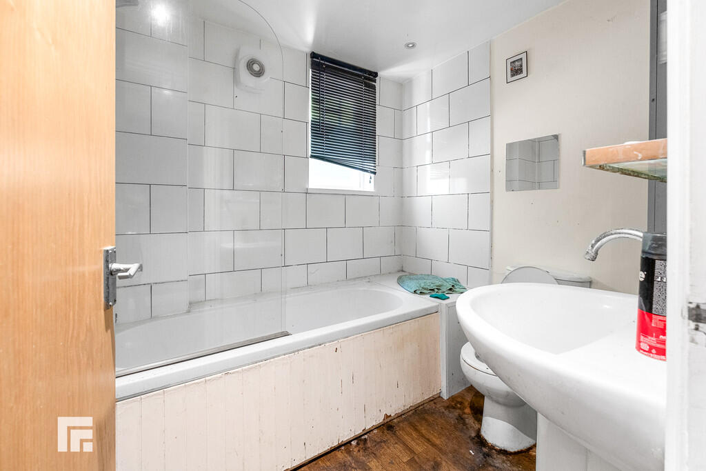 BATHROOM7' x 6' 04" (2.13m x 1.93m) Fitted with white suite to comprise bath, w.c and sink with mixer tap over. Shower screen. Bath with shower over. Double glazed opaque window to rear. Vinyl flooring.