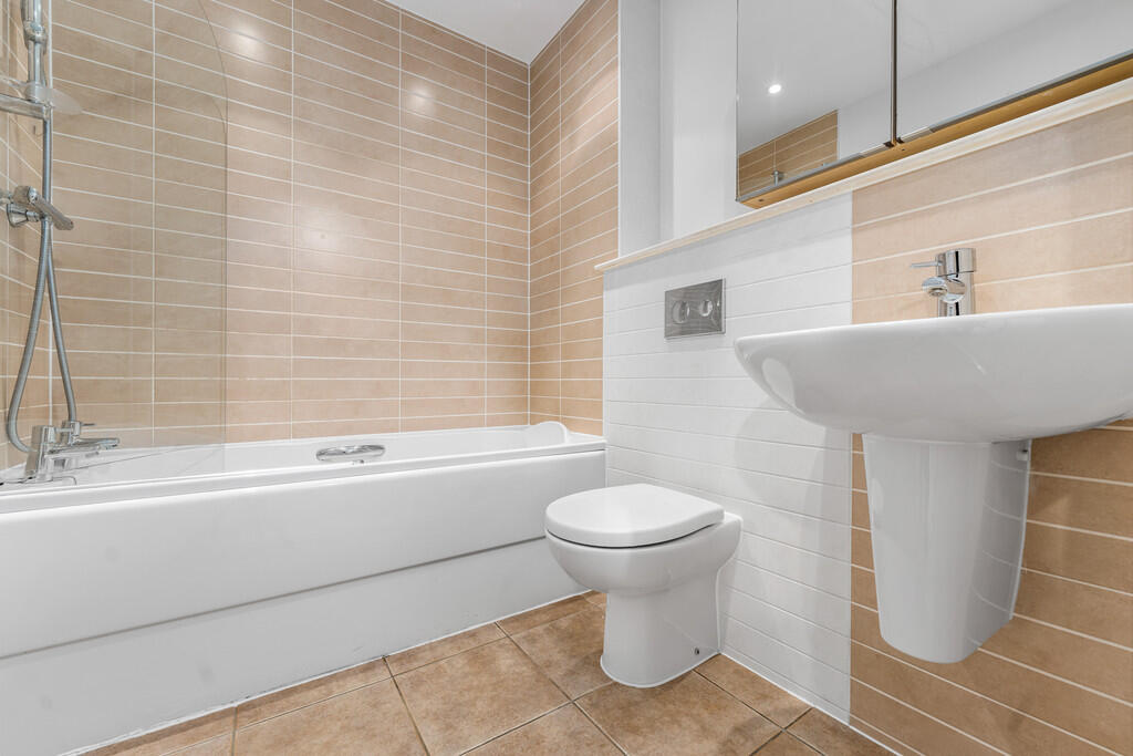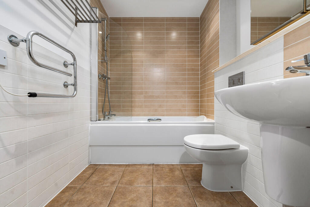 BATHROOM6' 10" x 6' 3" (2.09m x 1.91m) Tiled flooring. Part tiled walls. Panelled bath, with shower over and glass shower screen. Wall mounted wash hand basin. Wall mounted mirrored vanity unit. W.C. Heated towel rail. Shaver point. Spotlights.