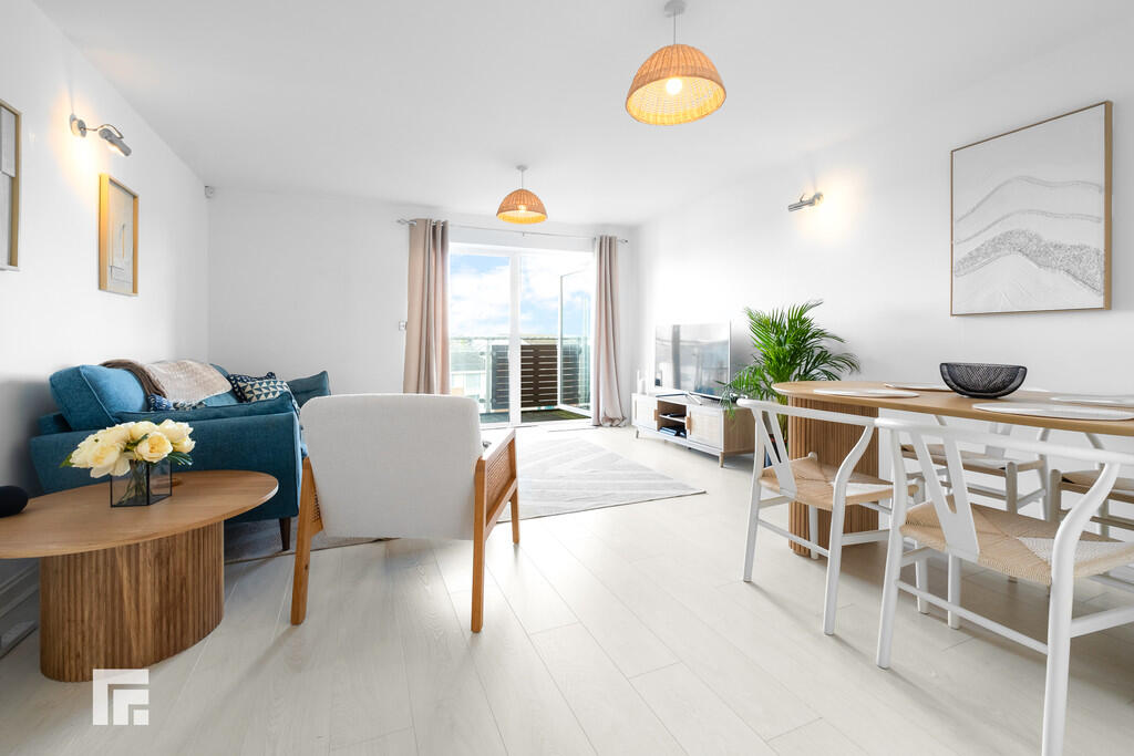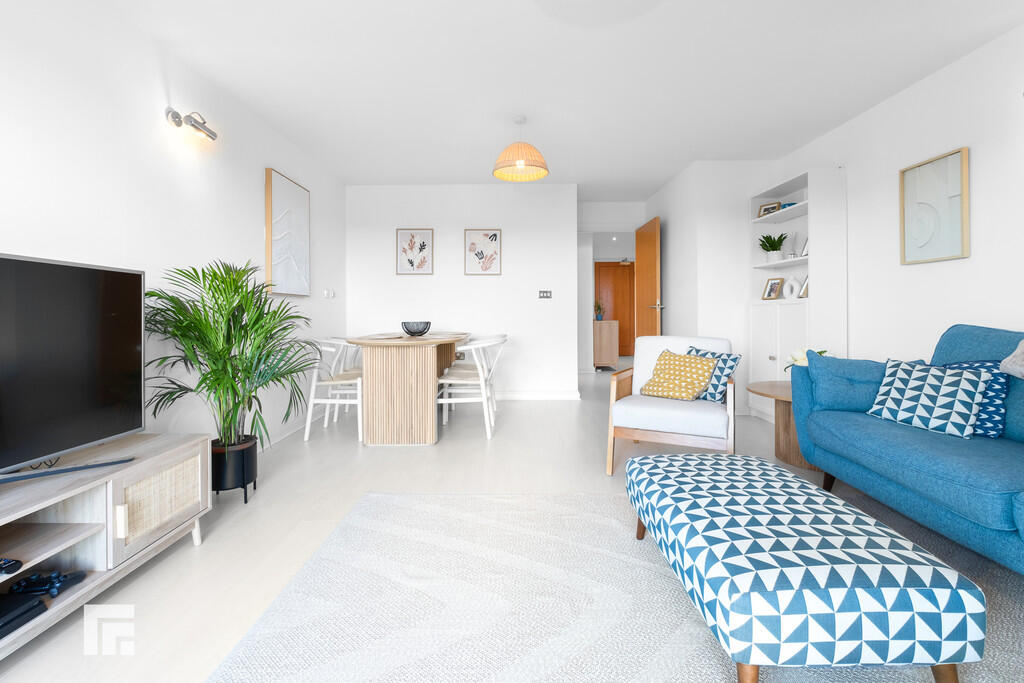 LIVINGROOM19' 8" x 14' 0" (6.01m x 4.29m) Large double glazed uPVC window and patio door, leading to balcony. Spacious living room. Laminate wood effect flooring. Underfloor heating. T.V Aerial point. Telephone point. Thermostat.