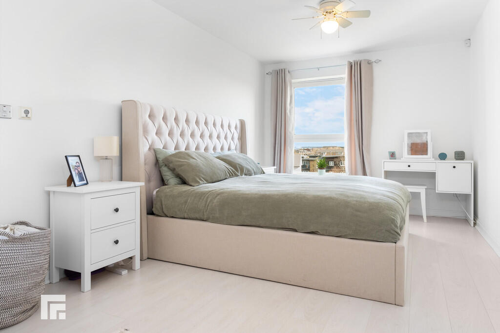 BEDROOM23' 9" x 9' 7" (7.25m x 2.94m) Exceptionally large double bedroom. Double glazed uPVC windows to front. Laminate wood effect flooring. Underfloor heating. Two built in double wardrobes. T.V Aerial point. Telephone point. Thermostat. Ceiling fan light.