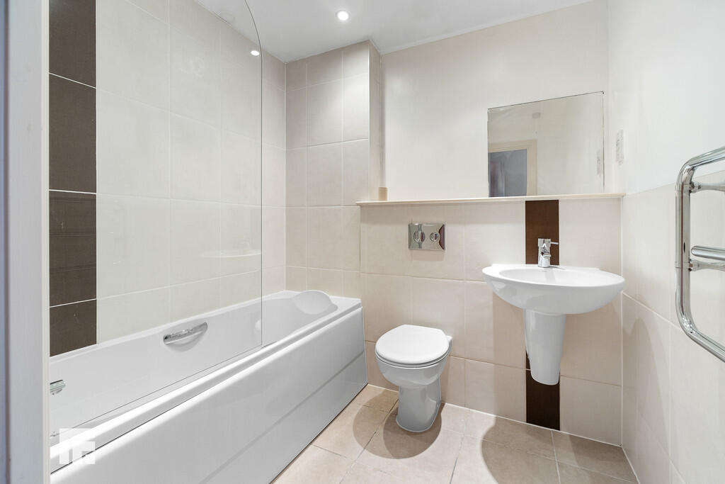 BATHROOM6' 10" x 6' 2" (2.09m x 1.89m) Modern bathroom. Tiled flooring. Partly tiled walls. Wall mounted wash hand basin, with mixer tap. W.C. Panelled bath, with mains shower over and glass shower screen. Heated towel rail. Shaver point. Extractor fan. Spotlights.