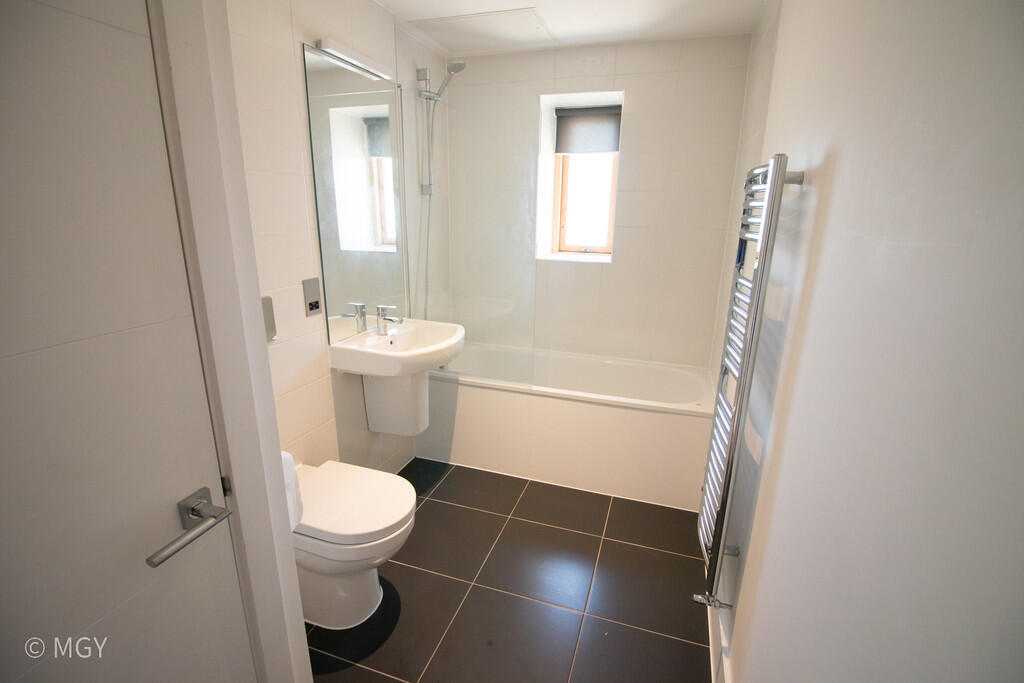 BATHROOM Double glazed window, to front aspect. Tiled flooring. Part tiled walls. Panelled bath, with shower attachment and glass shower screen. Wall mounted wash hand basin. Cupboard housing boiler. Wall mounted mirror with lighting above. W.C, with dual flush. Shaver point. Heated towel rail. Extractor fan. Spotlights.