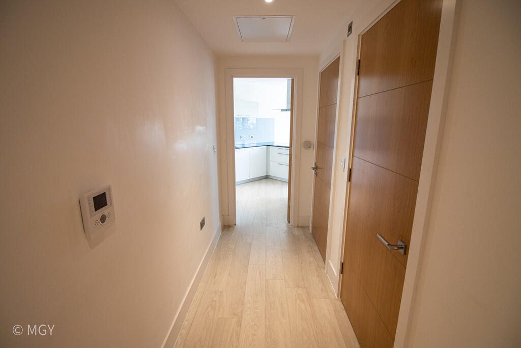 ENTRANCEHALL Entered via wooden door, with security spy hole. Wall mounted video entry intercom system. Amtico flooring. Wall mounted radiator. Storage cupboard with network distribution hub. Doors leading to kitchen/diner, bedroom and bathroom. Spotlights.