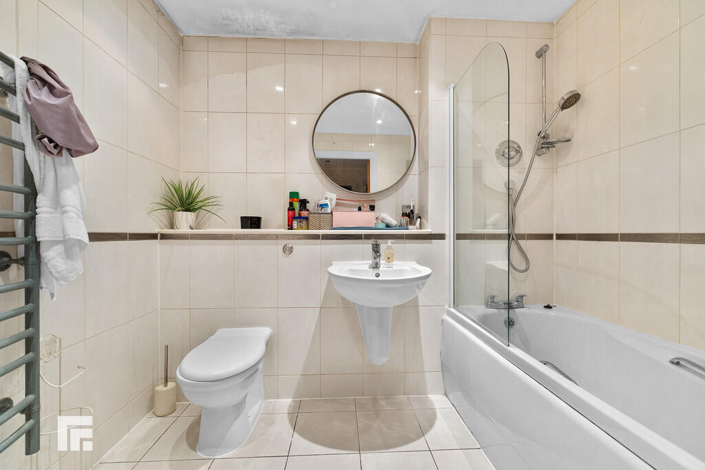 BATHROOM7' 10" x 6' 3" (2.39m x 1.91m) Modern bathroom. Tiled flooring. Fully tiled walls. Wall mounted wash hand basin, with mixer tap. W.C. Panelled bath, with mains shower over and glass shower screen. Heated towel rail. Shaver point. Extractor fan. Spotlights.
