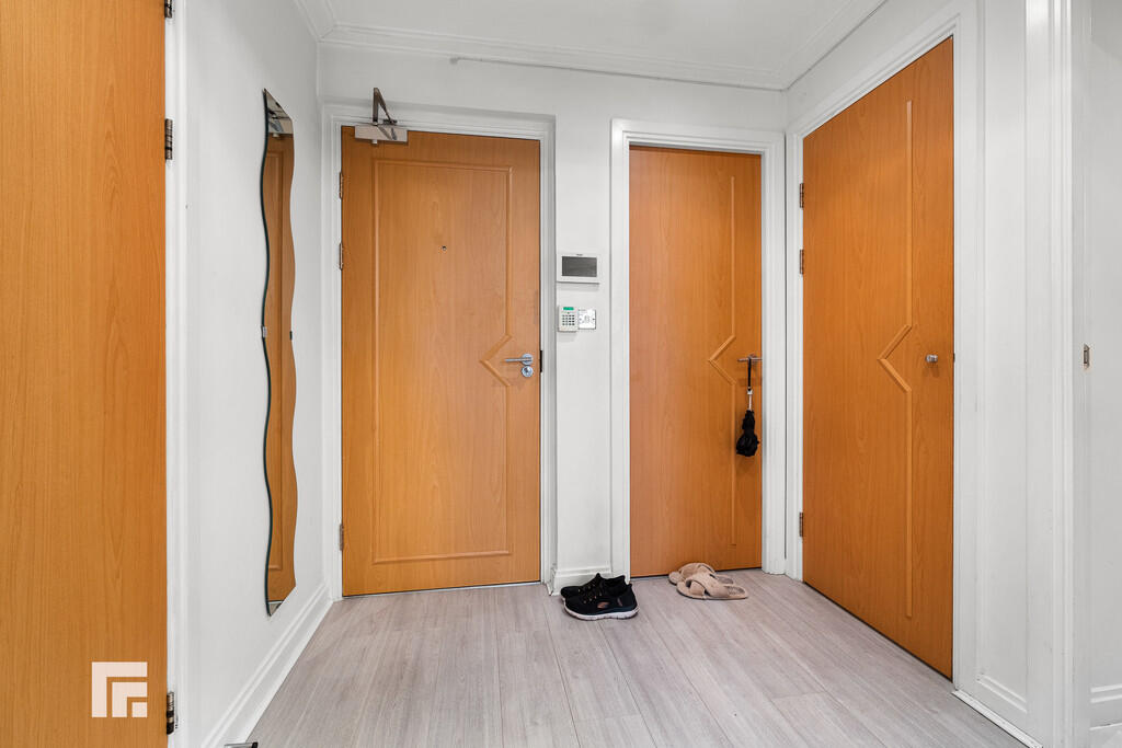 ENTRANCEHALL Entered via wooden door, with security spy hole. Laminate wood effect flooring. Wall mounted video entry intercom system. Door to two storage cupboards, one housing hot water tank. Thermostat control. Spotlights.