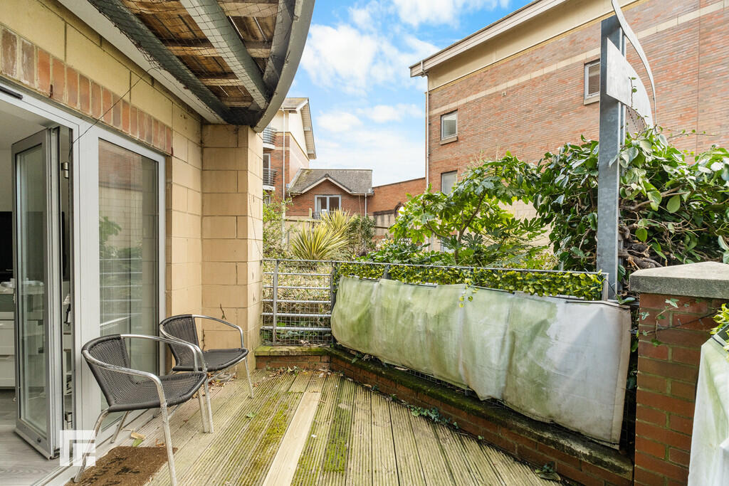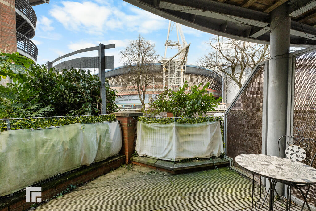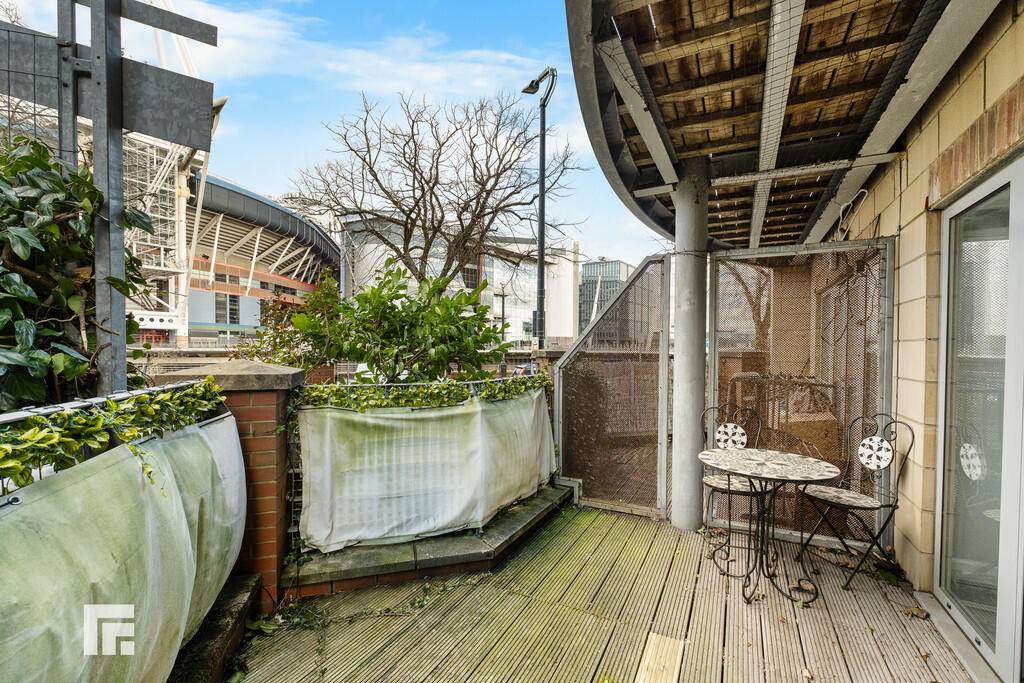 BALCONY Large decked private balcony with views of the Principality Stadium, accessed from the sitting room.