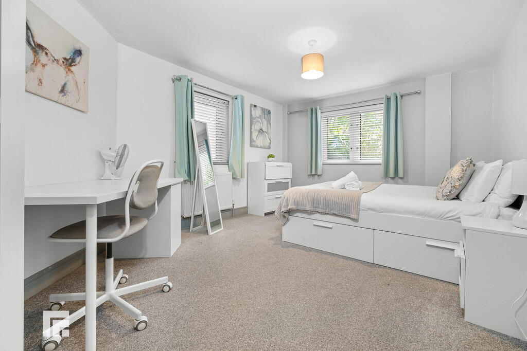 BEDROOM18' 2" x 11' 0" (5.55m x 3.36m) Double bedroom. Carpeted flooring. Double glazed uPVC window to side and front aspects with fitted blinds. Radiator. Pendant lighting. PowerPoints. Door to en-suite: