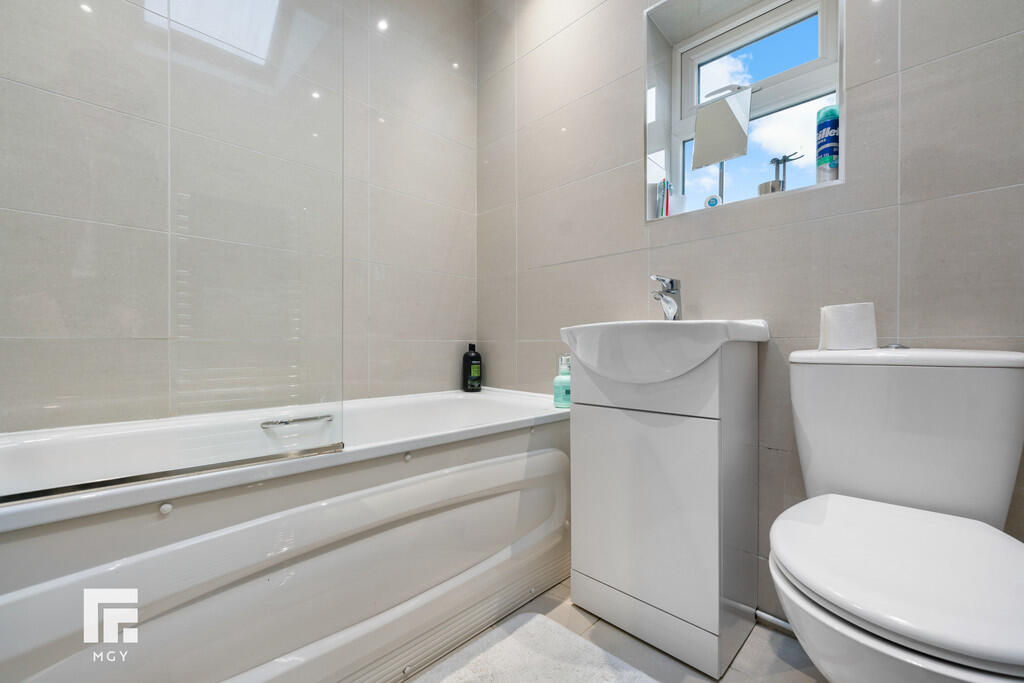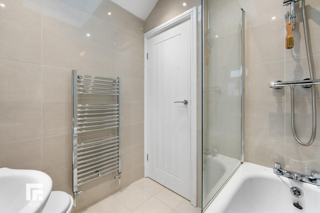 BATHROOM5' 6" x 6' 2" (1.70m x 1.88m) Obscured double glazed uPVC window to rear. Panelled bath with mixer tap and mains shower over, vanity enclosed wash hand basin with mixer tap, w.c. Velux skylight. Spotlights. Chrome heated towel rail. Tiled walls and floor.