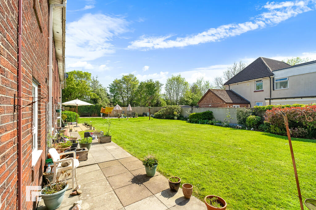 REARGARDEN A south facing paved patio opening out to communal garden with shrub and hedge borders.