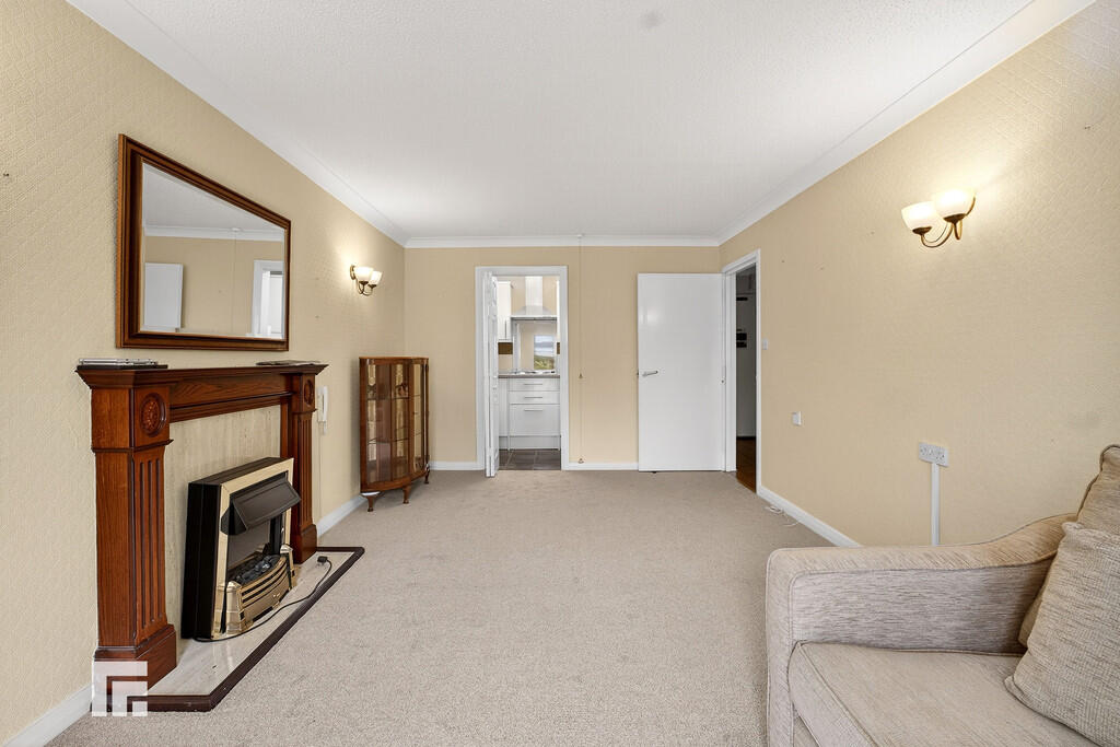 LOUNGE/DINER17' 9" x 10' 5" (5.43m x 3.18m) A good sized lounge with French door opening into the well maintained, rear communal garden. Tilted uPVC window to rear. Storage heater. Electric fireplace with mantelpiece and hearth. Folding door leading into kitchen