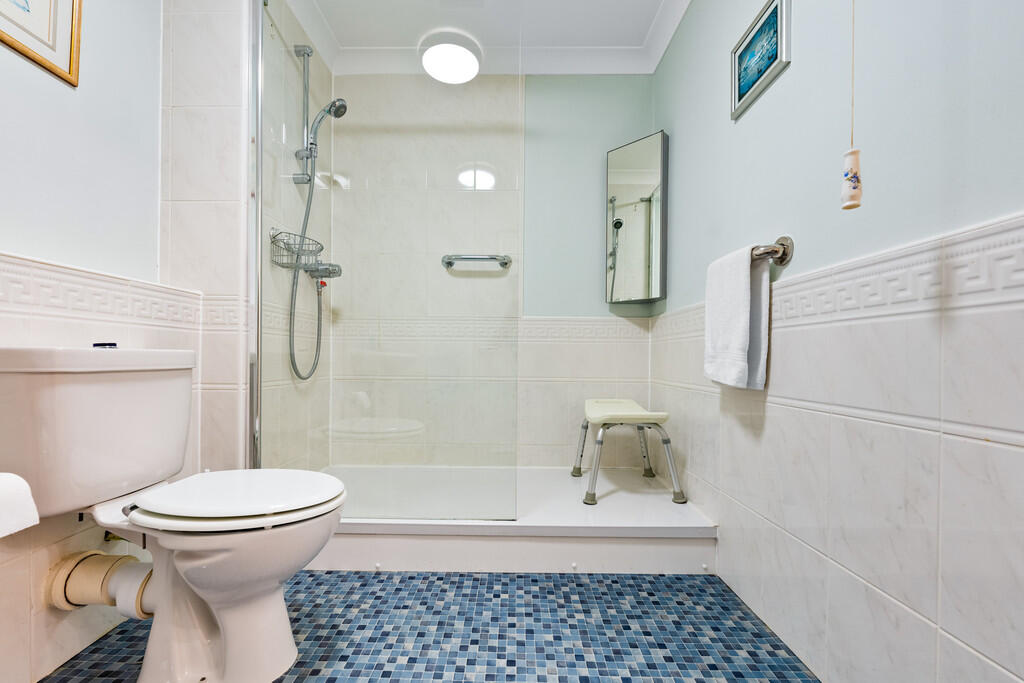 SHOWERROOM Fitted with a traditional three piece suite comprising walk in double shower tray with fitted glass shower screen, WC and wash hand basin. Tiled walls with vinyl flooring and finished with a central light pendant.