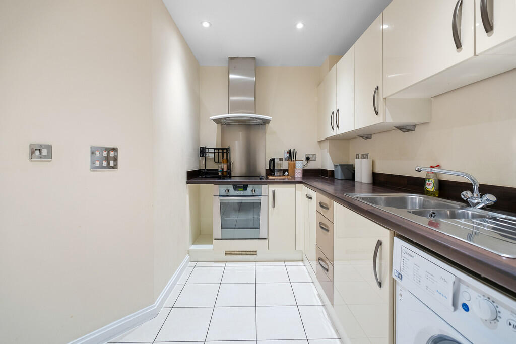 KITCHEN7' 6" x 9' 10" (2.30m x 3.00m) Tiled flooring. Modern fitted wall and base units, with work surfaces incorporating double stainless steel sink and drainer. Ample storage, with under unit spotlights. Built in oven and four ring electric hob, with stainless steel extractor hood over. Splash back. Integrated dishwasher and washer/dryer. Space for fridge freezer. Underfloor heating. Thermostat control. Extractor fan. Spotlights.