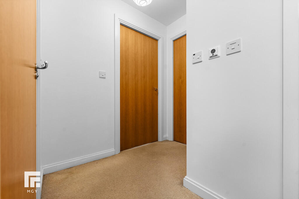 ENTRANCEHALL Entered via wooden door, with security spy hole. Carpeted flooring. Wall mounted video entry intercom system. Storage cupboard, housing hot water tank. Thermostat controls.