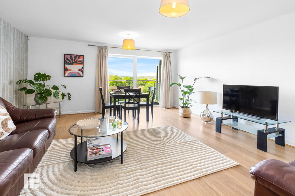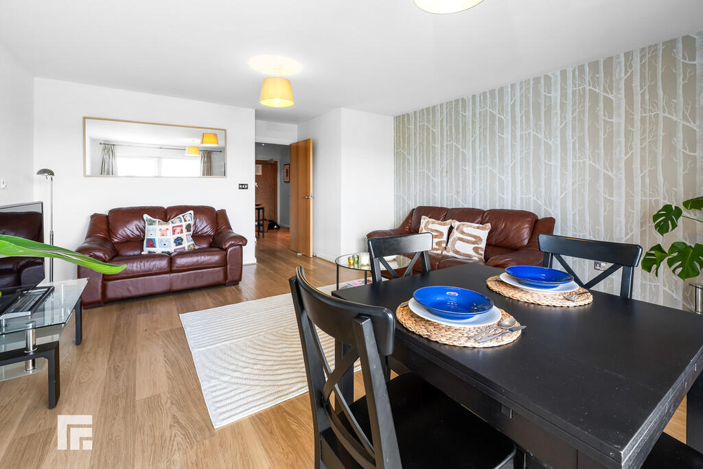 LIVINGROOM18' 0" x 15' 0" (5.50m x 4.58m) Spacious living room. Large double glazed uPVC window and patio door, leading to decked balcony. Stunning views of Cardiff Bay and beyond. Ample natural daylight. Laminate wood effect flooring. Underfloor heating. T.V Aerial point. Telephone point. Thermostat control.