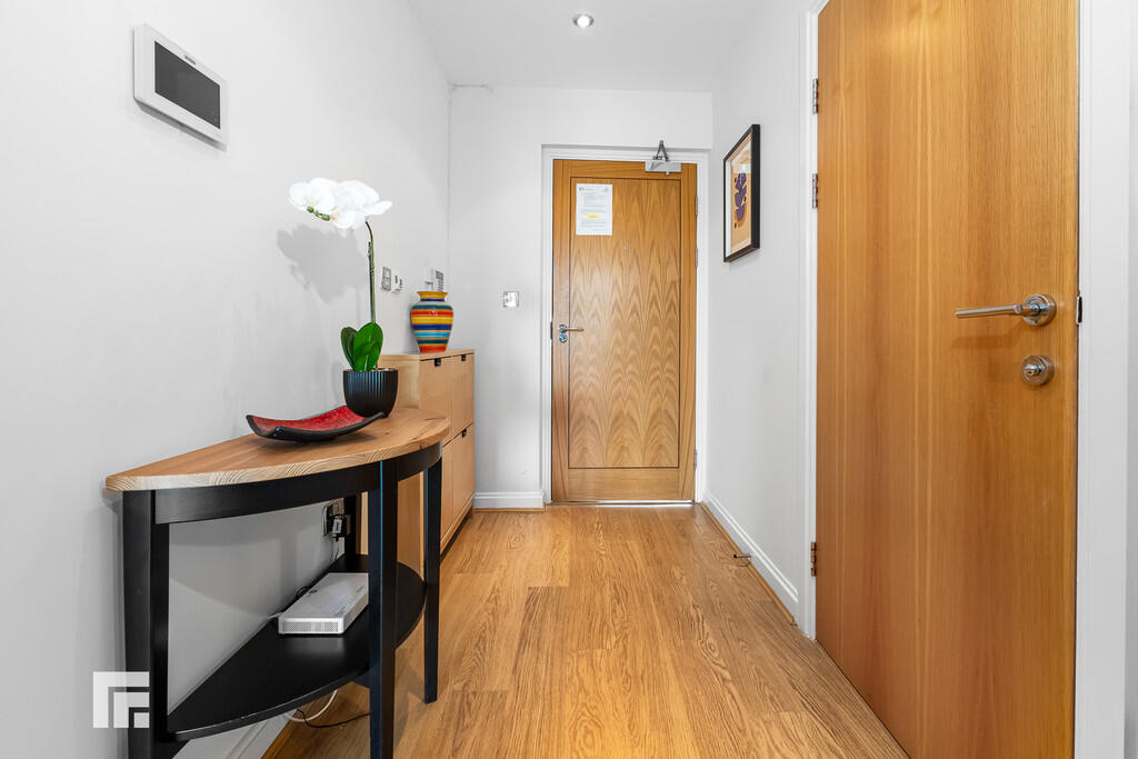 ENTRANCEHALL Entered via wooden door, with security spy hole. Laminate wood effect flooring. Underfloor heating. Wall mounted video entry intercom system. Storage cupboard, housing hot water tank. Thermostat control.
