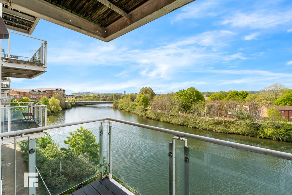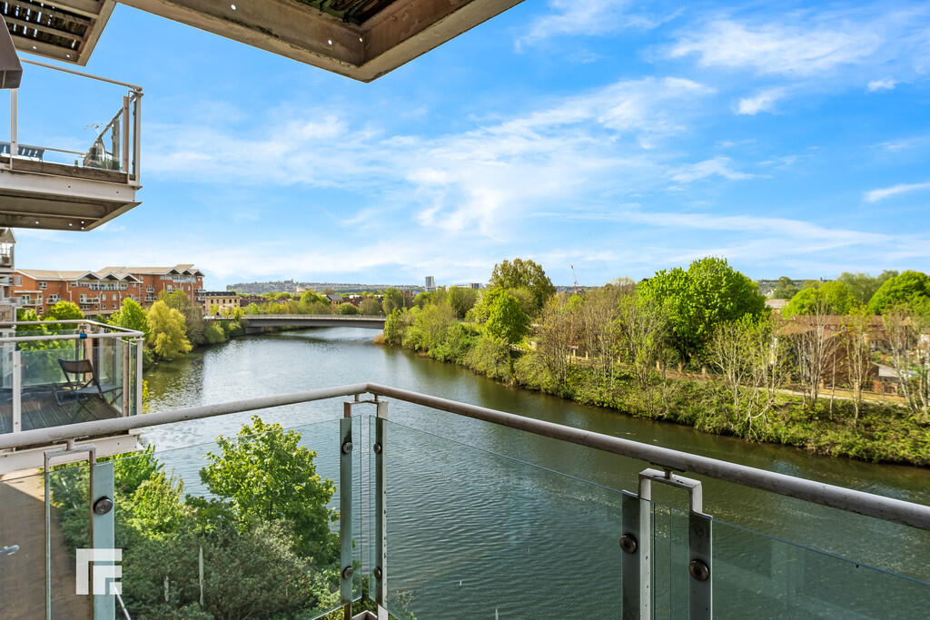 BALCONY Large decked balcony, with fantastic water views of Cardiff Bay and beyond. Ample sun. Glass surround. External lighting. Accessed from the living room.