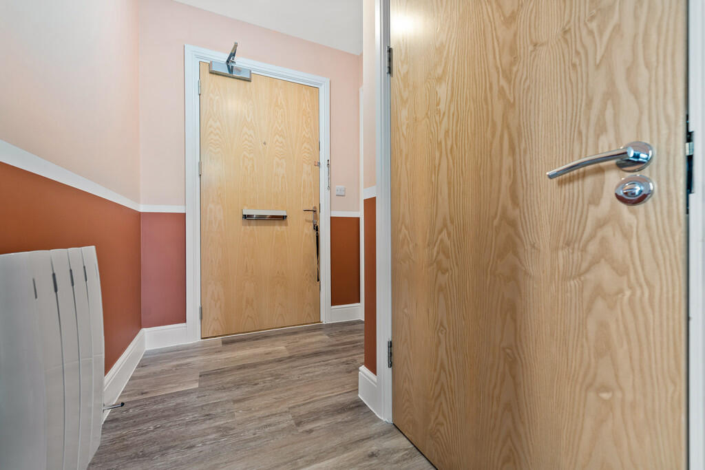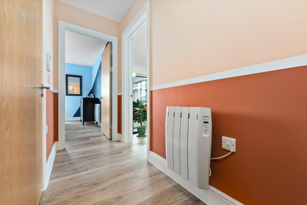 ENTRANCEHALL Entered via wooden door, with security spy hole. Laminate wood effect flooring. Wall mounted electric panel heater. Large storage cupboard, housing hot water tank. Wall mounted video entry intercom system.