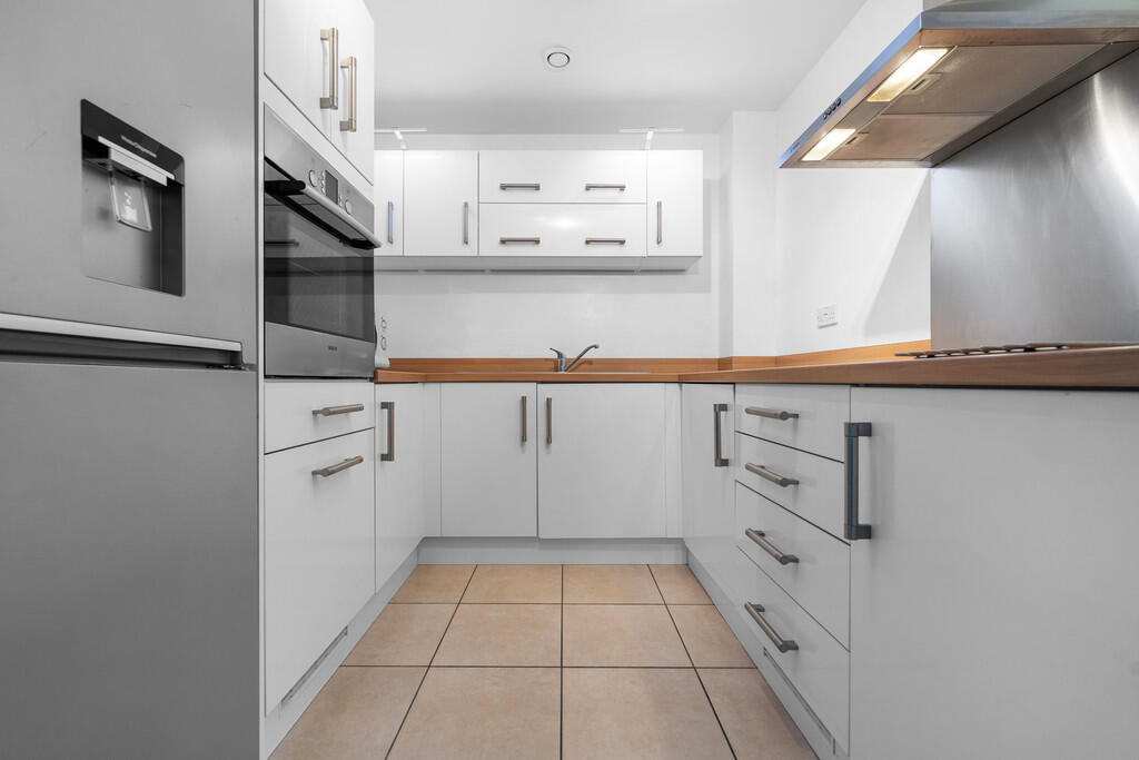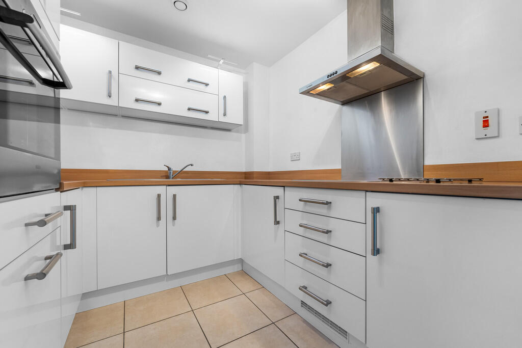 KITCHEN8' 5" x 7' 11" (2.58m x 2.43m) Tiled flooring. Modern fitted units, with work surfaces incorporating stainless steel sink. Ample storage, with over unit LED lighting. Integrated oven, four ring electric hob and stainless steel extractor hood over. Splash back. Extractor fan. New integrated washer/dryer. Space for fridge freezer.