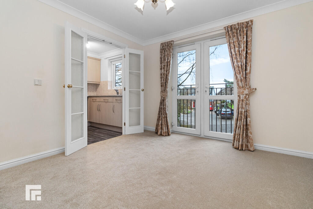 LOUNGE/DINER17' 6" x 10' 4" (5.34m x 3.16m) Feature fireplace with inset coal effect electric fire. French doors with Juliet balcony. Electric storage heater. TV and telephone points. Warden assist cord. Newly carpeted. Double doors opening to: