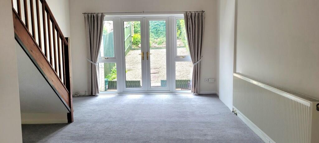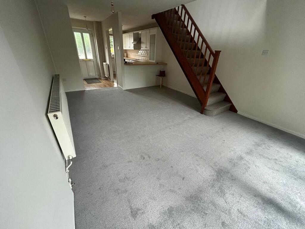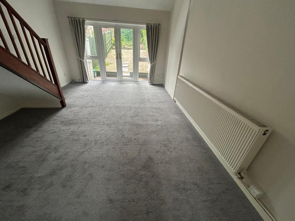LivingRoom Roomsize: 18'7 x 12'4 Double glazed french doors giving access to rear garden. Brand new fitted carpet. Radiator. Stairs rising to first floor.