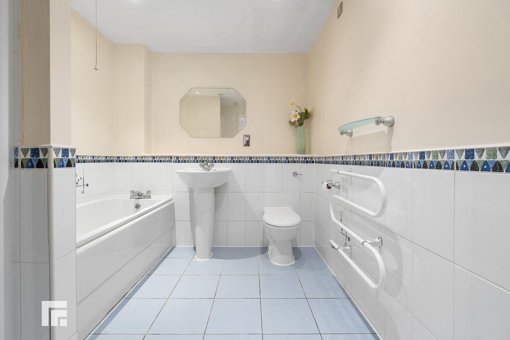 BATHROOM9' 2" x 7' 2" (2.8m x 2.2m) Large bathroom. Tiled flooring and walls. Spotlights. Panelled bath with mixer tap over. Separate shower cubicle with glass screen. W.C. Pedestal wash hand basin with hot and cold tap over. Spotlights. Heated towel rail. Shaver point. Extractor fan. Vanity mirror.