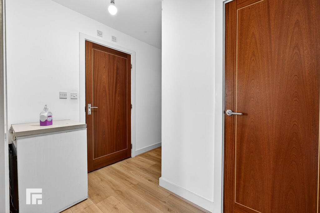 ENTRANCEHALL Entered via wooden door, with security spy hole. Video entry intercom system. Laminate wood effect flooring. Built in storage cupboard, housing hot water tank. Wall mounted electric panel heater.