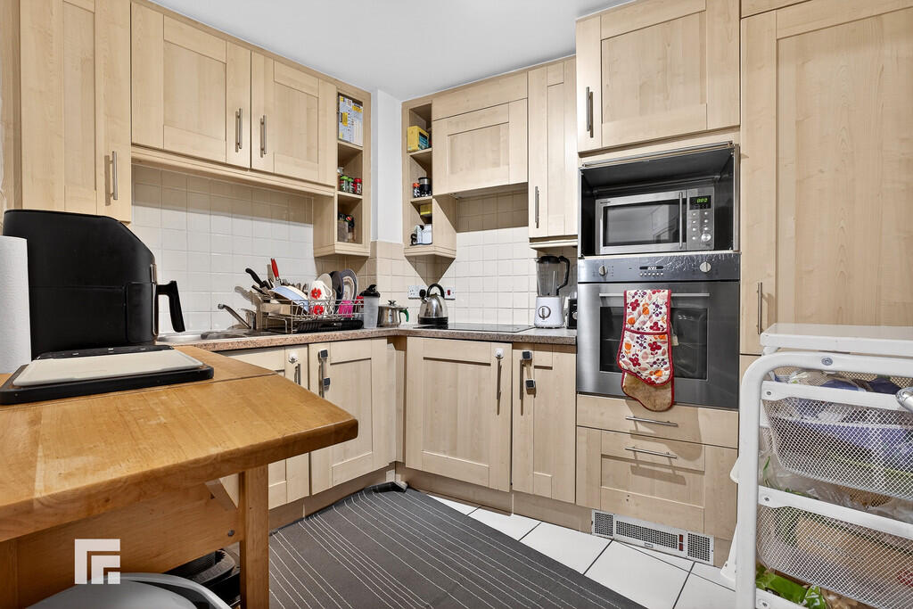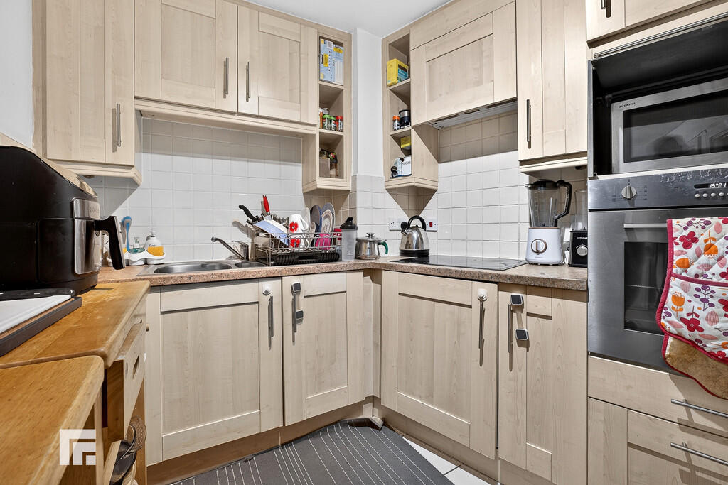 KITCHEN9' 5" x 7' 5" (2.89m x 2.28m) Separate kitchen. Tiled flooring. Part tiled walls. Fitted units with work surfaces incorporating stainless steel sink. Built in four ring electric hob, oven and extractor fan over. Integrated microwave, fridge freezer and washing machine. Plinth heater.
