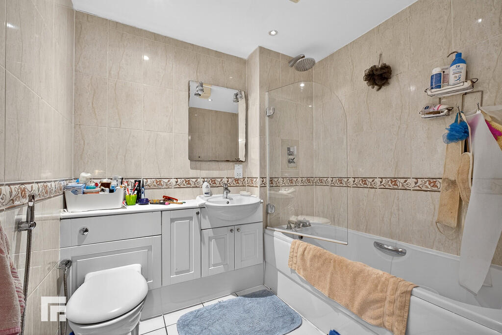 BATHROOM7' 2" x 6' 3" (2.19m x 1.93m) Tiled flooring. Fully tiled walls. Panelled bath with shower over and glass shower screen. Vanity enclosed wash hand basin. W.C. Wall mounted mirror, with lighting. Heated towel rail. Extractor fan. Shaver point. Spotlights.