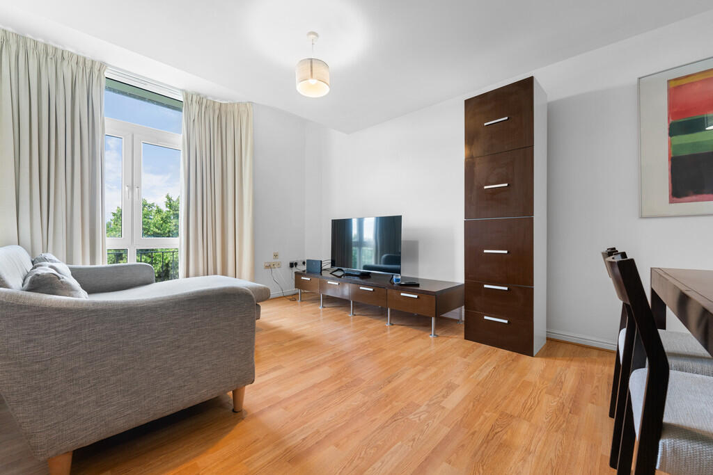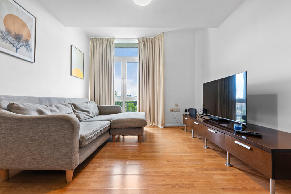 BEDROOM14' 11" x 10' 10" (4.55m x 3.31m) Double glazed uPVC floor to ceiling windows to front. Large double bedroom. TV point. Laminate wood effect flooring. Wall mounted electric storage heater.