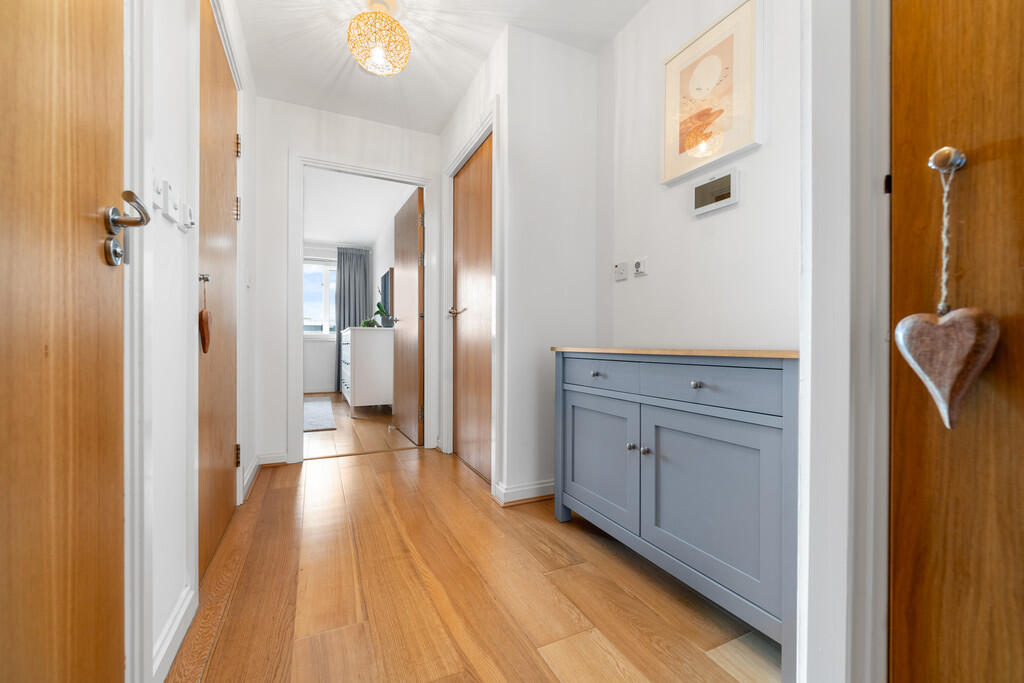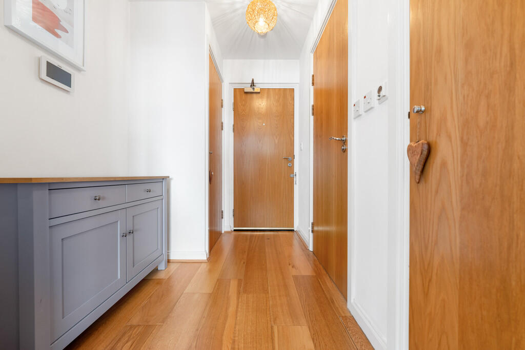 ENTRANCEHALL Entered via wooden door, with security spy hole. Wood flooring. Two storage cupboards, one housing hot water tank. Wall mounted video entry intercom system. Thermostat control.