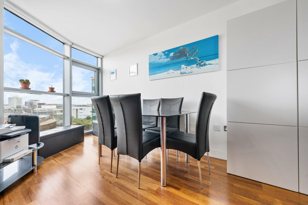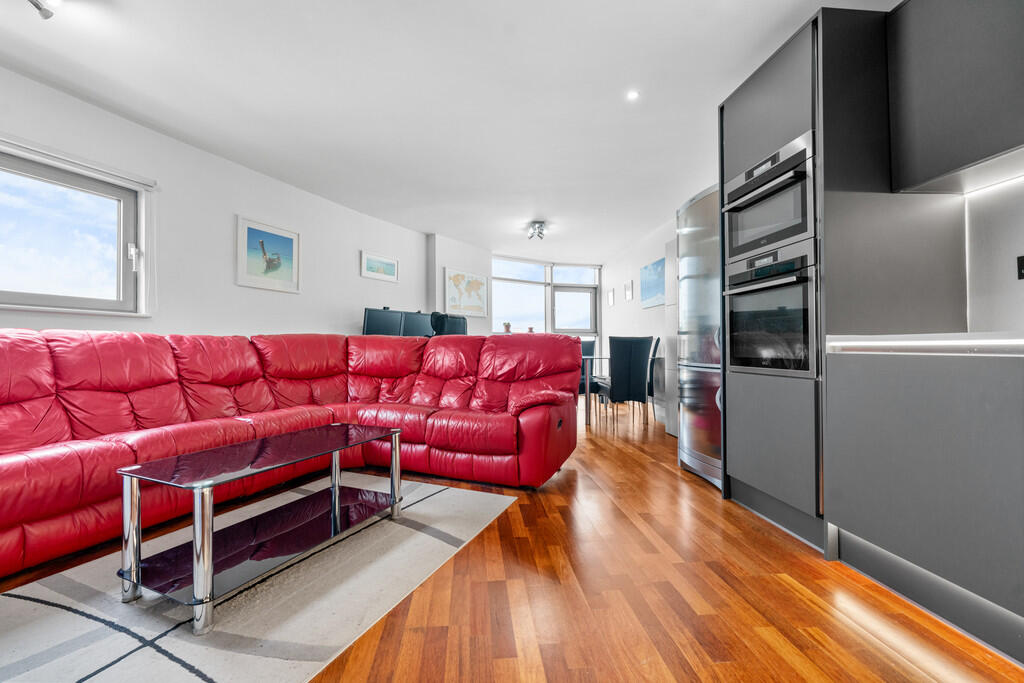 LOUNGE/KITCHEN/DINER26' 10" x 18' 0" (8.2m x 5.5m) Continuation of laminate flooring. Bright and spacious open plan space. Double glazed floor to ceiling windows providing excellent views over the City Centre. Modern fitted kitchen with wall, base and drawer units with worktops over incorporating composite sink with mixer tap over. Tiled splashback. Integrated oven and four ring electric hob with extractor over, fridge/freezer, dishwasher and washer/dryer. Under counter feature lighting. Two wall mounted electric panel heaters. TV Aerial point. Telephone point. Spotlights and pendant light fittings. Power points.