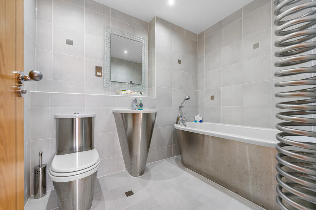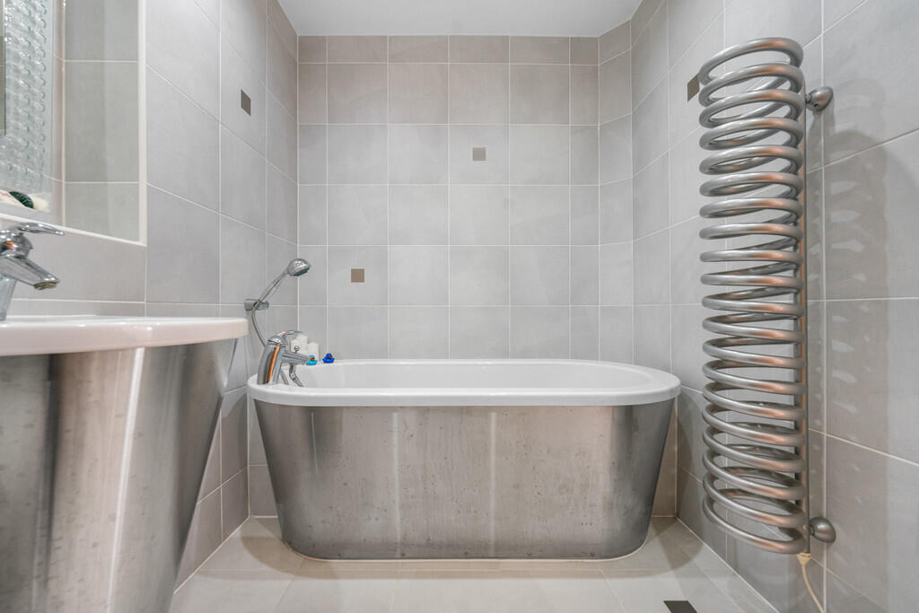 BATHROOM8' 2" x 6' 6" (2.5m x 2.0m) Fully tiled walls and flooring. Spotlights. Three-piece-suite comprising WC, wall mounted wash hand basin with mixer tap over, and bath with mixer tap and handheld shower attachment over. Shaver point. Extractor fan. Spiral heated towel rail.