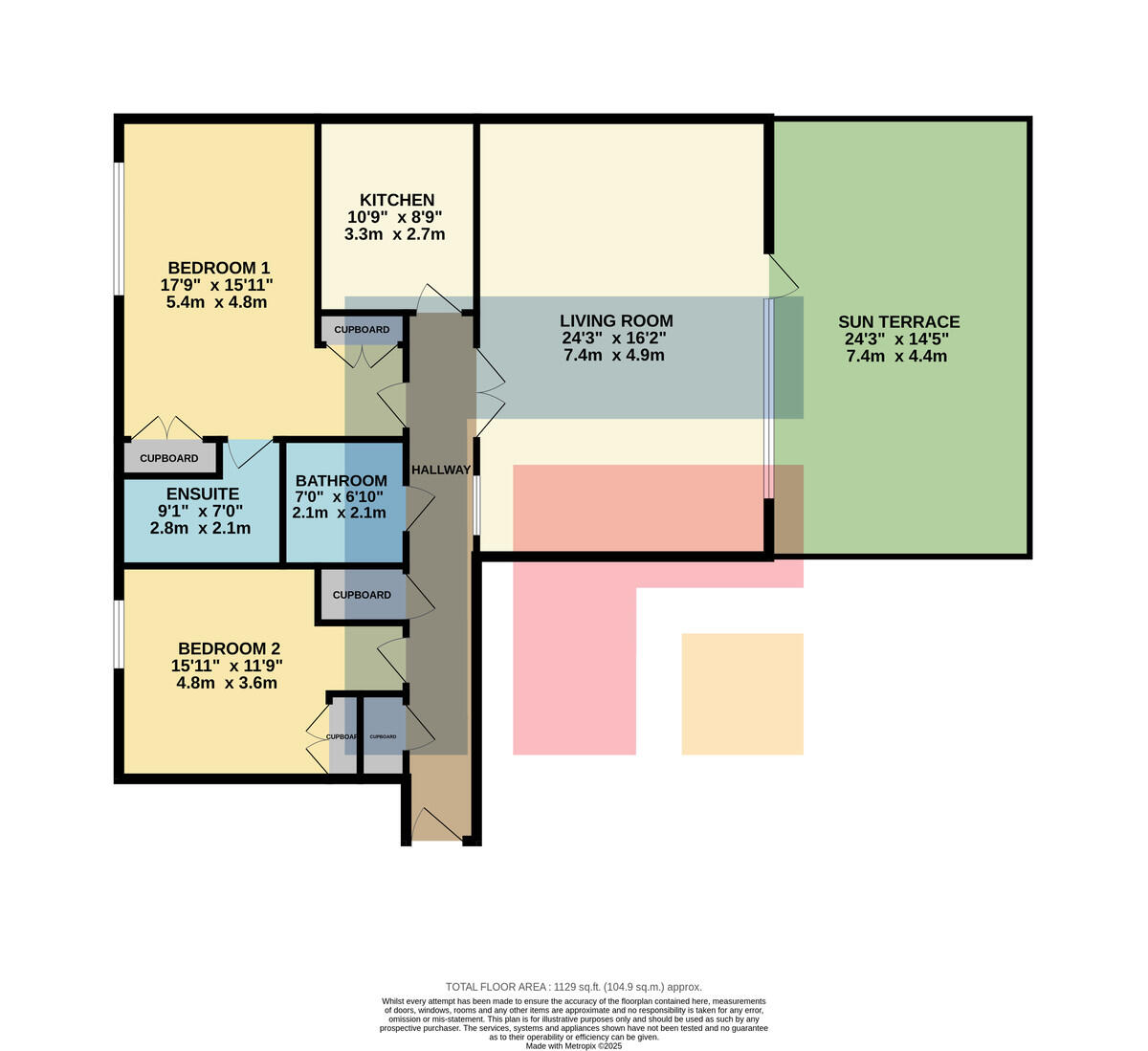 MASTERBEDROOM17' 8" x 15' 8" (5.4m x 4.8m) Laminate flooring. Spotlights. Double glazed uPVC window. Fitted wardrobes. Power points. Wall mounted electric heater. Door to ensuite.
