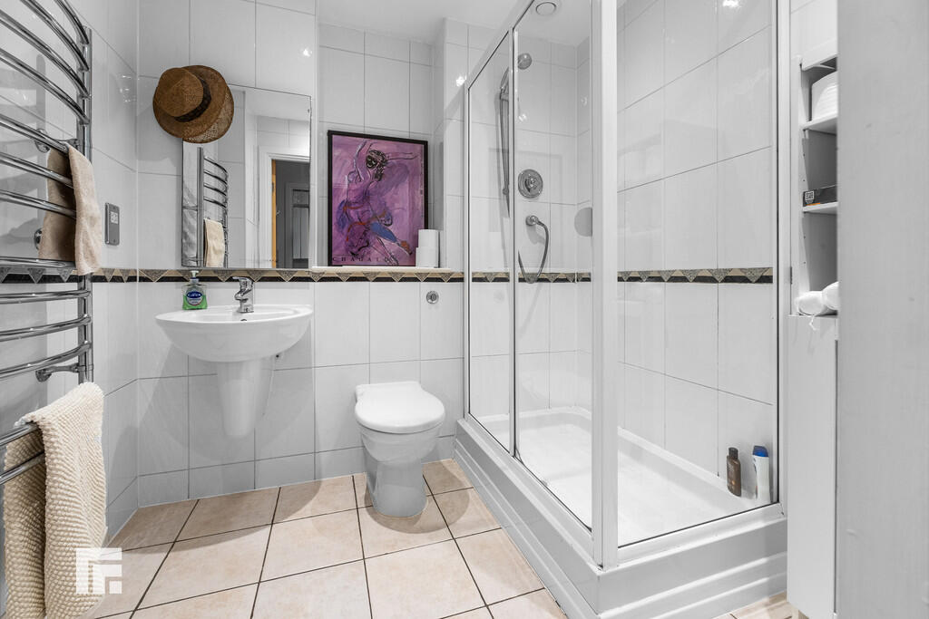 BATHROOM6' 10" x 6' 10" (2.1m x 2.1m) Tiled flooring and partially tiled walls. WC. Wall mounted wash hand basin with mixer tap over. Walk in shower cubicle with mains powered shower over. Chrome heated towel rail. Spotlights. Shaver point.