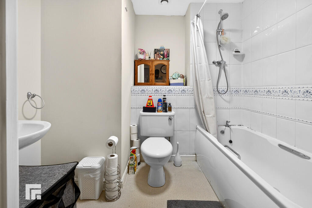 BATHROOM With suite to comprise panelled bath with shower attachment over. Closed cistern w.c and wash hand basin. Ceramic tile to splash back. Vinyl flooring.
